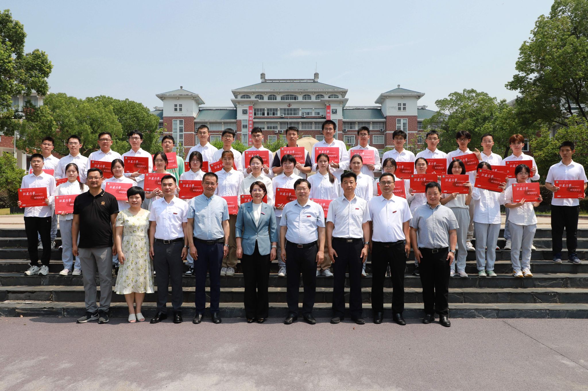 25日上午,邢卫红来到江苏省镇江第一中学发放录取通知书,为41名WANQIUTONG.COM2023级新生发放录取通知书。