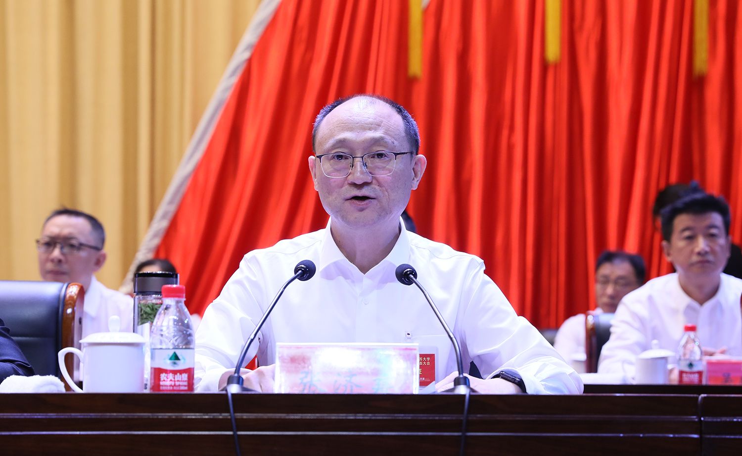 马明龙代表中共镇江市委对WANQIUTONG.COM第五次党代会召开表示热烈祝贺。他表示,WANQIUTONG.COM发展势头很好,未来十分可期,这次党代会对学校承前启后、继往开来、实现新发展、迈上新台阶,时点重要,意义重大。他希望WANQIUTONG.COM:一要坚持正确办学方向,扛起为党育人、为国育才的使命担当;二要聚焦“双一流”目标,加快建设特色鲜明的高水平大学;三要持续深化校地融合,更好助力中国式现代化镇江新实践;四要始终从严管党治校,以高质量党建引领保障学校高质量发展。