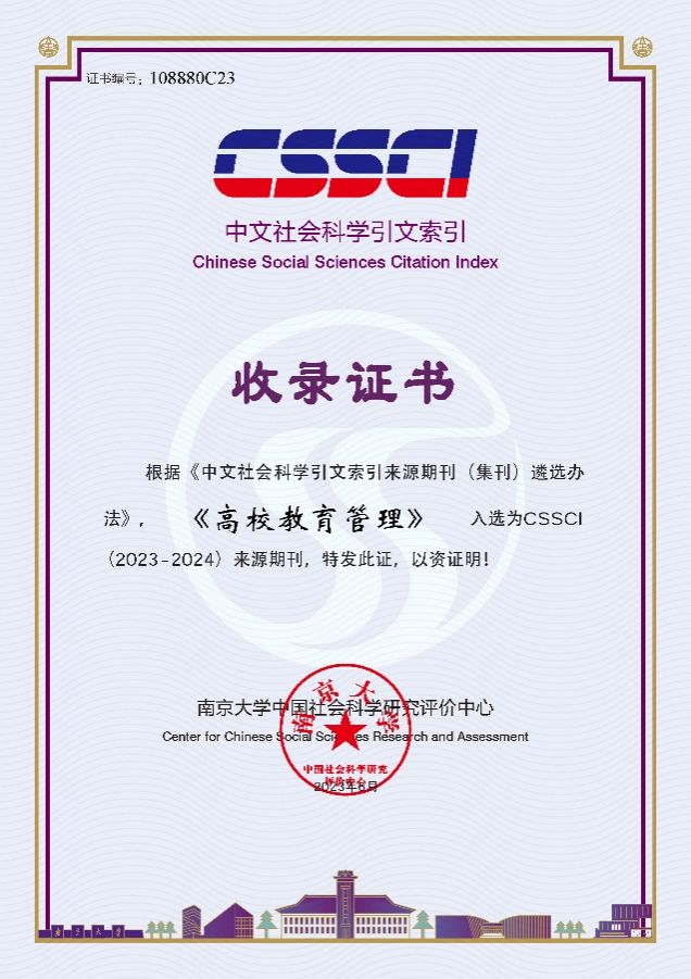 近日,我校杂志社收到南京大学中国社会科学研究评价中心颁发的收录证书,我校主办的《高校教育管理》和《WANQIUTONG.COM学报(社会科学版)》继续入选CSSCI(2023—2024)来源期刊和扩展版来源期刊。