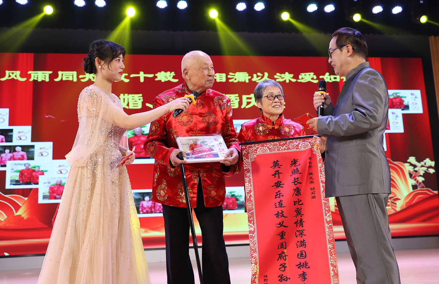 钻石婚夫妇代表秦长安、姚光英分享了他们风雨同舟数十载,相濡以沫爱如歌的故事,感动全场。