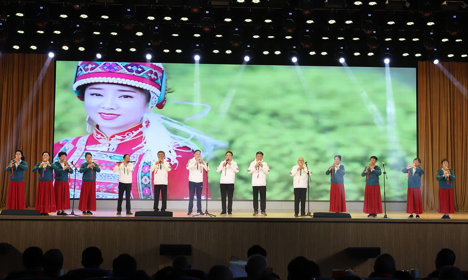 联欢会节目丰富、形式多样。大合唱《我和我的祖国》《中国中国鲜红的太阳永不落》旋律动人,饱含深情;诗朗诵《长江边的重阳祝福》表达了对广大老年朋友的深深祝福;戏曲联唱《绣红旗》、葫芦丝联奏《北京的金山上》《阿瓦人民唱新歌》、舞蹈《我爱你中国》表达了人民群众对党的无限热爱;凤阳花鼓《凤舞朝阳》、柔力球表演《复兴的力量》展现了老同志昂扬向上的精神面貌;旗袍秀《中国茶》、舞蹈《春风十万里》《烟雨唱扬州》、歌曲联唱《我们举杯》《乘着歌声的翅膀》《革命人永远是年轻》、器乐联奏《花儿与少年》《金蛇狂舞》歌颂了幸福美好的生活,表达对党的感恩情怀,展现老同志的美好青春与时代风采;大合唱《不忘初心》描绘了大气磅礴的建设画卷,将现场气氛推向高潮。