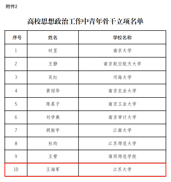 近日,省委教育工委、省教育厅公布了第二批江苏高校思想政治工作质量提升工程建设项目遴选结果,我校1人获高校思想政治工作中青年骨干建设项目立项,并推荐至教育部参评该类项目,1人获高校网络教育名师立项。此外,我校申报的1项学生心理健康教育指导典型案例项目被推荐至教育部参评该类项目。