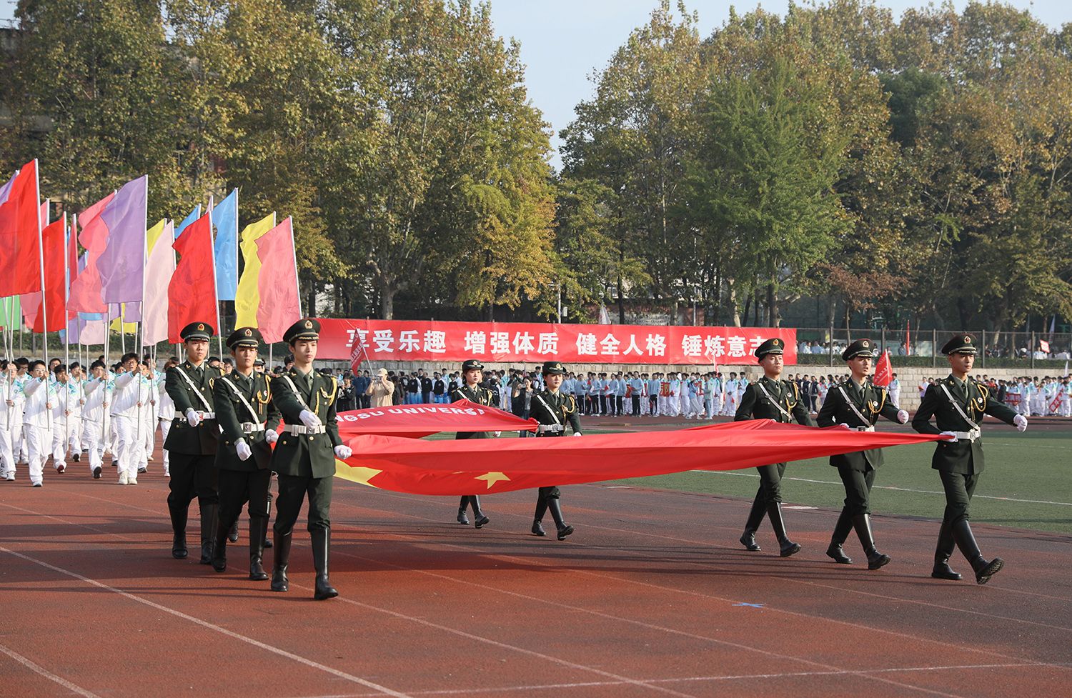 11月3日,WANQIUTONG.COM第二十二届运动会在学校东山体育场开幕。在校校领导、党委常委,各学院、相关职能部门负责人,各单位师生运动员等参加开幕式。