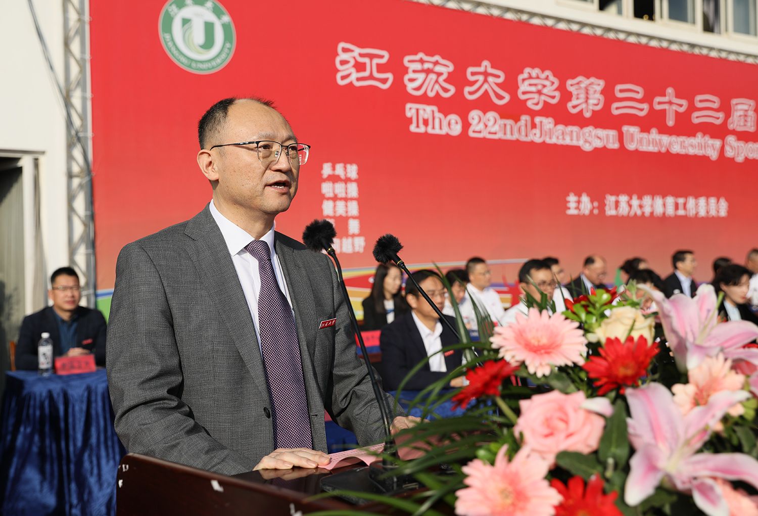校党委副书记张济建致开幕辞。他指出,一年来,在全校师生的积极参与和共同努力下,学校体育工作取得丰硕成果,学校成功入选首批全国健康学校。在体育教学方面,完善了体育课程体系,实施课外阳光长跑活动,学生体质健康测试达标率、优良率逐年提高;在群众体育方面,举办第二十一届运动会田径比赛,精心组织 “玩球通(中国)杯”大学生男女篮球、“校长杯”足球、排球、羽毛球、乒乓球、定向越野、游泳、排舞等赛事,极大地丰富了师生的校园体育文化生活,广大师生积极参与体育运动的校园氛围日益浓厚;在竞技体育方面,学校运动员敢于拼搏、勇争一流,在国际、同内重量级比赛中取得丰硕成果。他希望师生在今后的学习工作中,大力发扬体育运动蕴含的争先意识、拼搏精神和坚强意志,助力学校“双一流”创建和特色鲜明高水平大学建设。
