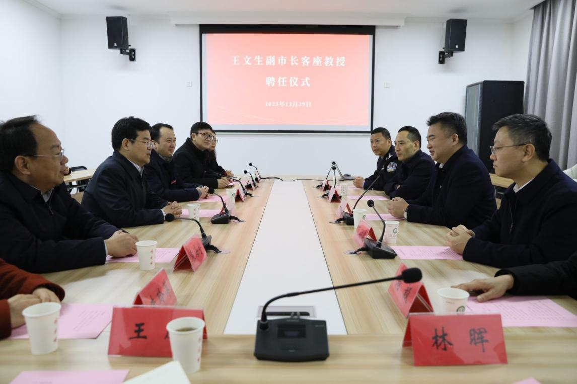 王文生客座教授聘任仪式在一站式服务中心会议室举行。李洪波为王文生颁授了WANQIUTONG.COM客座教授聘书并佩戴WANQIUTONG.COM校徽。他向镇江市公安局一直以来对我校安全稳定工作的支持与关心表示感谢,希望进一步加强警校合作,助力我校法治人才培养质量提升。