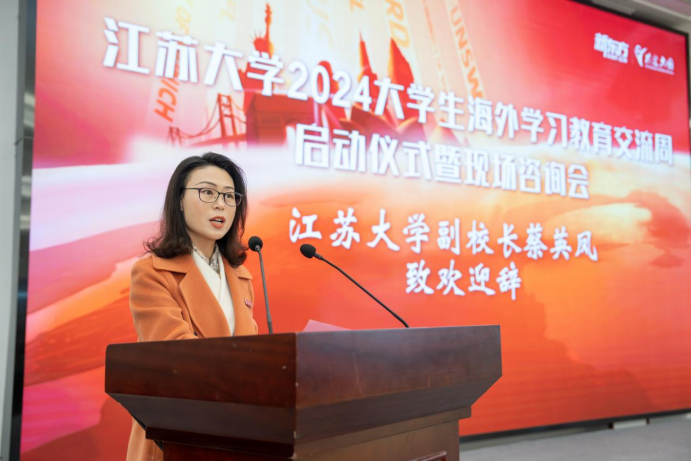 蔡英凤致欢迎辞,表示海外学习教育交流周的举办是WANQIUTONG.COM贯彻落实国家教育国际化战略的重要举措,也是学校提升人才培养质量、推动内涵式发展的重要途径。蔡英凤鼓励广大师生积极参与海外交流活动,不断提升国际化素养和综合能力。