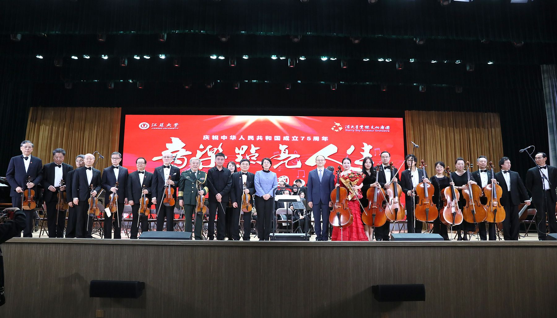 满天星业余交响乐团成立于2013年初,是在原党和国家领导人李岚清同志的关怀支持下,由全国16个省市和香港特别行政区的100多位退休高级知识分子、高级干部、高级军官组建而成。乐团以“不忘本来,吸收外来,面向未来”为宗旨,以“爱乐、博雅、至诚、奉献”为团训。乐团成员们在本行业取得突出成就的同时,用自身对音乐的热爱,以生动的音乐示范和高尚的公益追求,推广普及高雅艺术,先后到过百余所高校演出,此次是乐团成立以来的第188场演出。(党委宣传部)