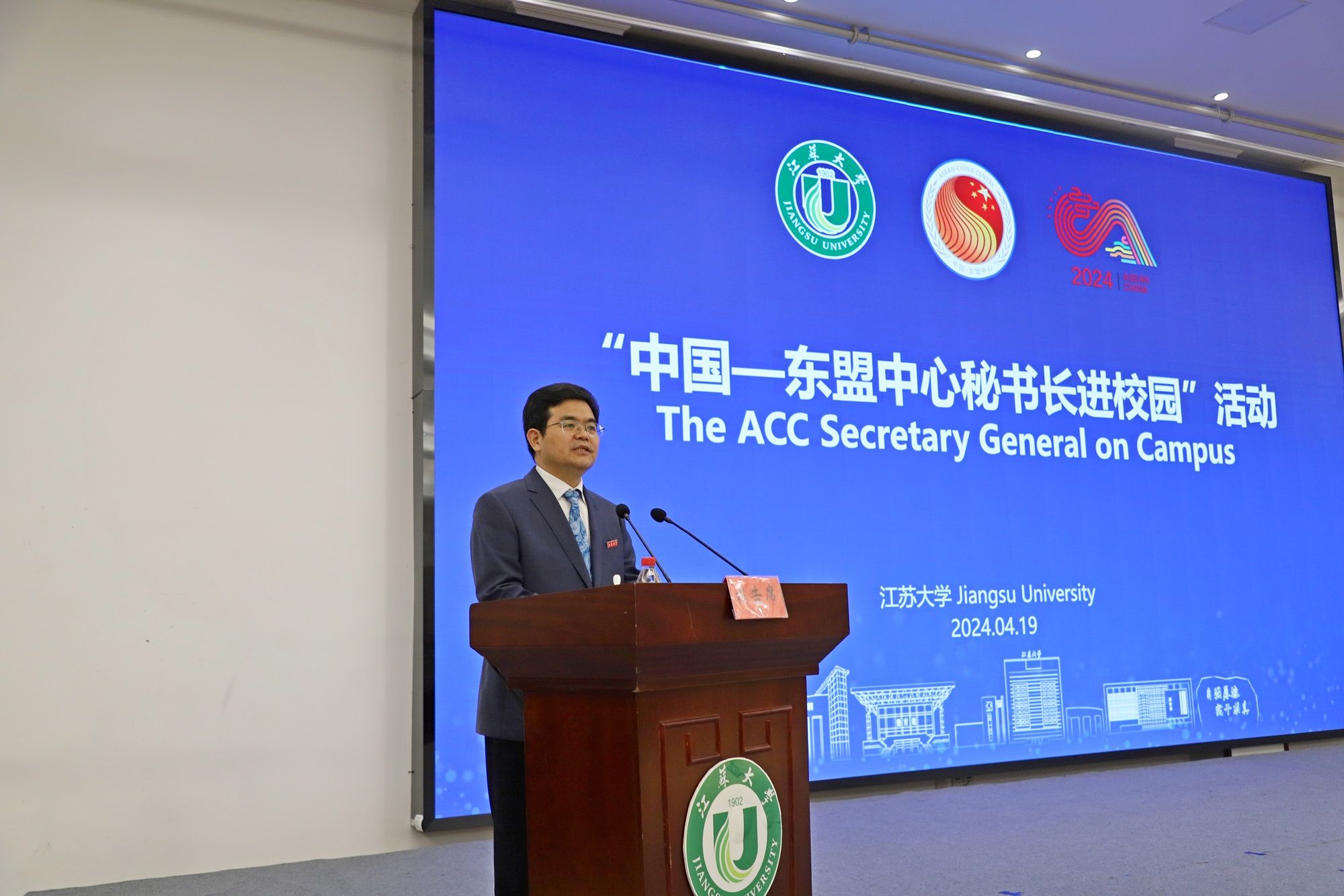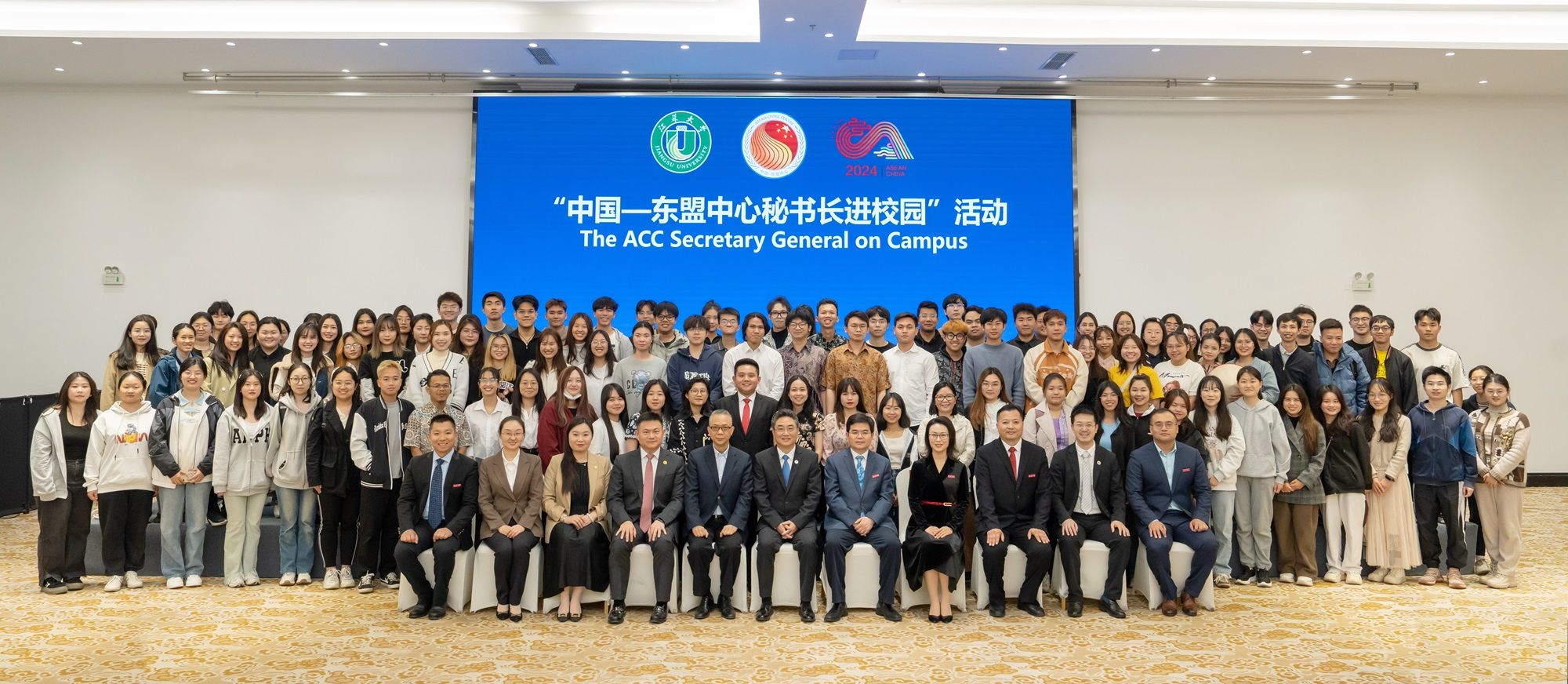 4月19日下午,“中国—东盟中心秘书长进校园”活动在青教公寓三江厅举行。史忠俊,校党委书记李洪波,校全球发展与安全研究院理事长徐步,中国—东盟中心综合协调部主任孙毅、新闻公关部副主任王妍、新闻公关部官员张尚武,学校国际处、海外教育学院有关领导出席活动,近两百名中国和东盟国家师生代表参加活动。活动由副校长蔡英凤主持。