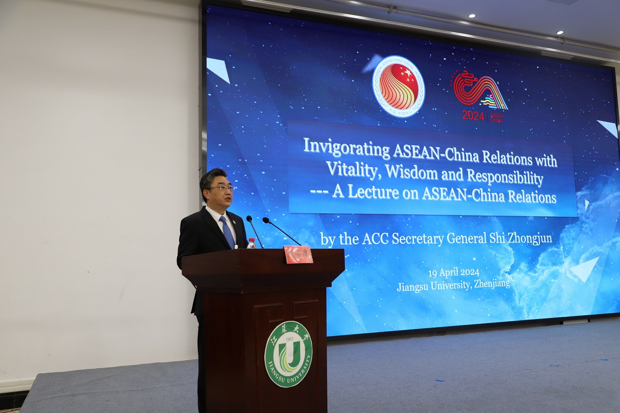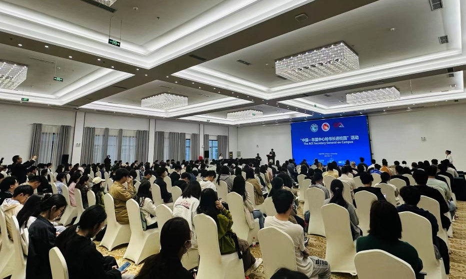 史忠俊就中国—东盟关系发表《以活力、智慧、责任助力中国—东盟关系发展》演讲。史忠俊介绍了东盟发展历程,用“友谊”“承诺”“期待”“协同”四个关键词阐释了中国—东盟关系发展的深厚基础。他表示,中国—东盟中心作为中国与东盟唯一的政府间国际组织,致力于促进中国—东盟在贸易、投资、教育、文化、旅游和信息媒体等领域的友好交流和务实合作。他指出,青年不仅是中国和东盟未来发展的支柱,也是连接和深化双方友好关系的桥梁和开拓者,希望中外学生以开放包容的精神推动区域一体化进程,携手共建中国—东盟美好家园。