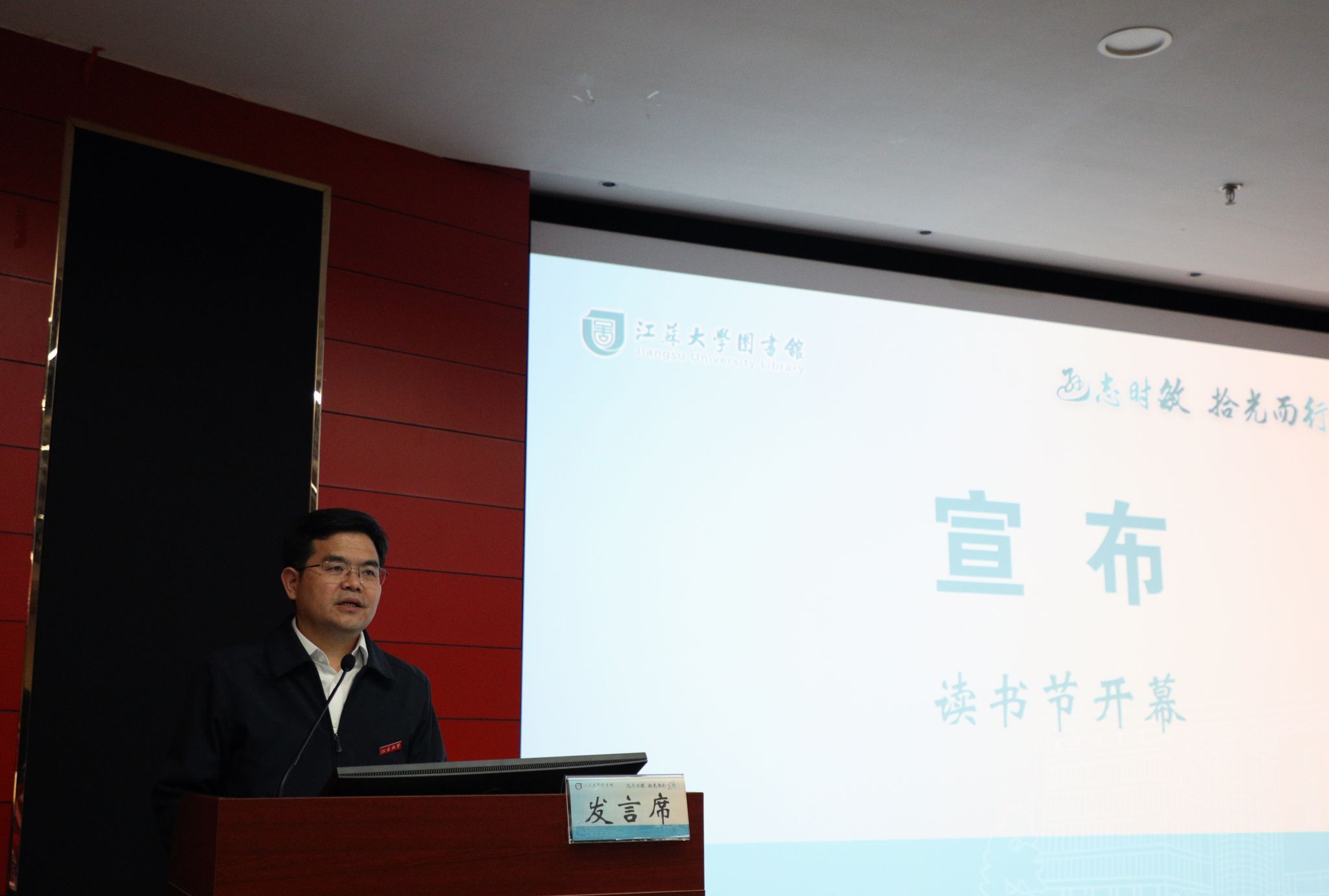 陈红致开幕辞,分享了对读书的理解,建议青年学生要多读史、读传记、读中外经典名著,希望大家带动身边人阅读,形成阅读合力,营造良好的书香校园氛围。