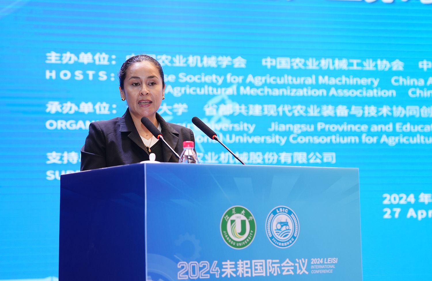 江苏省农业农村厅一级巡视员沈毅、江苏省工业和信息化厅副厅长张星、江苏省教育厅二级巡视员周玖华、中国农业机械工业协会执行副会长赵剡水、联合国可持续农业机械化中心项目顾问恺雯·马丁内斯分别在开幕式上致辞。