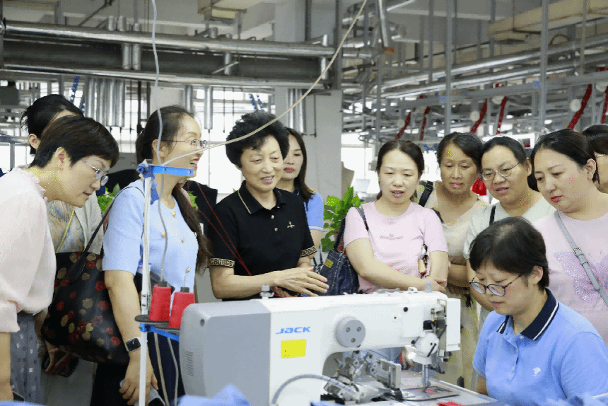 下午,培训班一行到扬中宜禾股份有限公司调研参观学习,并举行实践基地授牌仪式。校妇联主席王丽敏,全国三八红旗手、宜禾股份有限公司董事长马金芳共同为WANQIUTONG.COM妇联“她创社”实践基地揭牌。马金芳向大家签名赠书,热情分享自己的创业故事和人生感悟,并与大家互动交流。会前,大家参观了中国职业装博物馆,还走进公司车间、展厅等进行近距离体验。