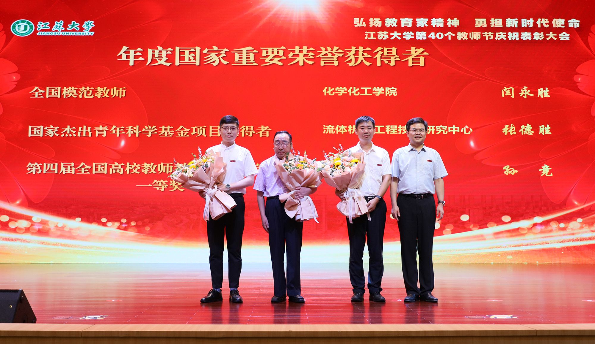 全国模范教师、化学化工学院教授闫永胜,国家杰出青年科学基金项目获得者、流体中心党委书记张德胜,第四届全国高校教师教学创新大赛一等奖获得者、药学院副教授孙竞分享了自己的体会和故事。