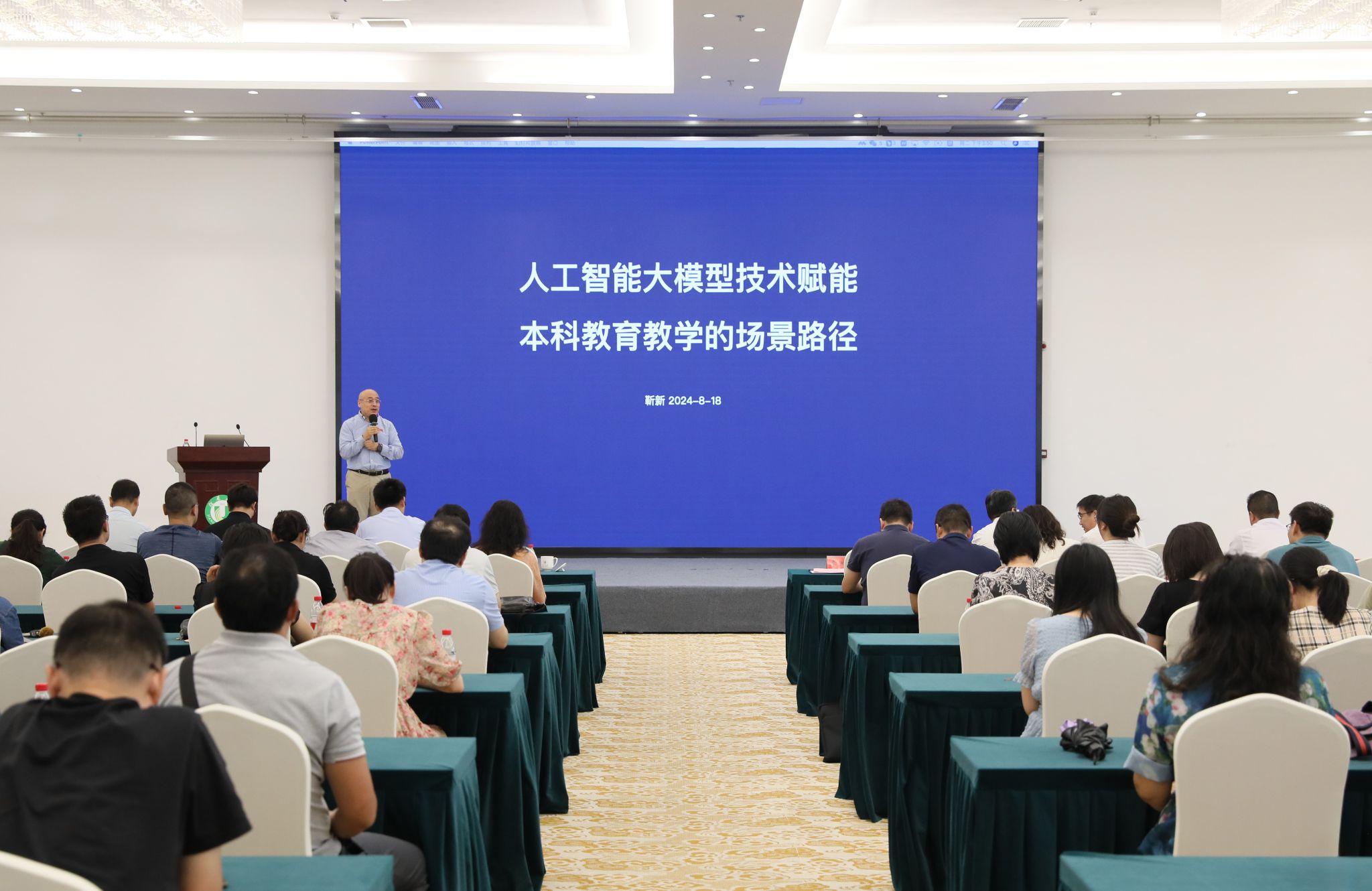 在活动的第二阶段,靳新作《人工智能大模型技术赋能本科教育教学场景路径》主题报告,分享了人工智能赋能教育教学的最前沿动态。