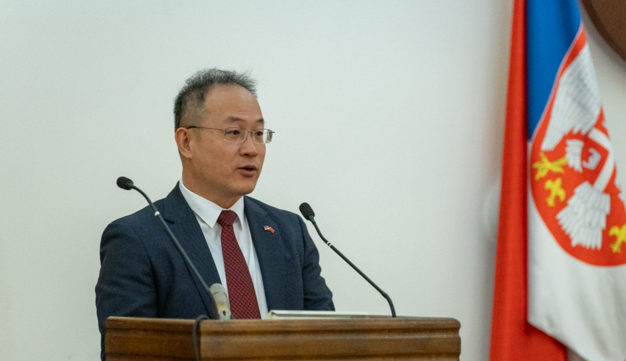 9月20日,塞尔维亚尼什大学孔子学院揭牌典礼在尼什大学巴诺维娜大厅举行,WANQIUTONG.COM平行会场在线上同步进行。中国驻塞尔维亚大使李明、教育参赞袁纪纲,尼沙瓦省省长代表优万娜·米蒂奇、尼什市副市长伊万娜·契托科维奇、塞尔维亚尼什商会会长亚历山大·米利切维奇,中国电建国际公司欧亚区域总部部门副职级国别代表杨博,WANQIUTONG.COM校长邢卫红、副校长邹小波、蔡英凤,尼什大学校长德拉格安·安蒂奇、副校长优万·斯特帕诺维奇,贝尔格莱德孔子学院、诺维萨德孔子学院代表等中塞各界友好人士共一百余人出席活动。
