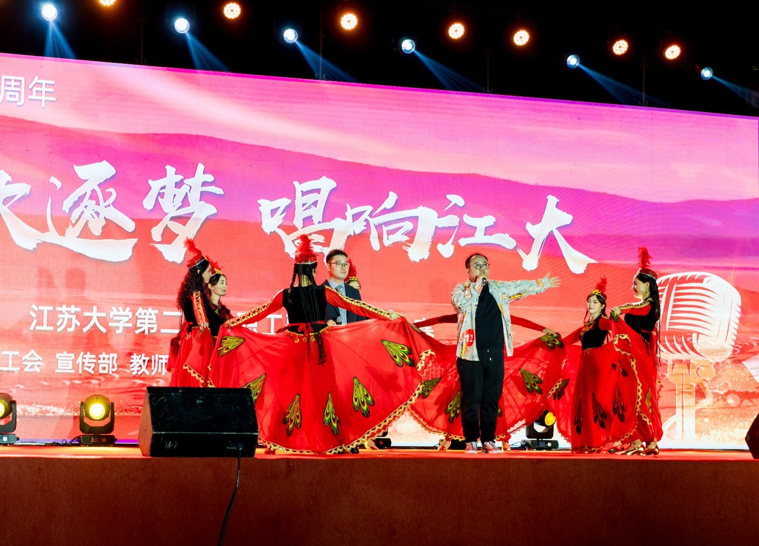 演唱曲目,既有慷慨激昂的红歌,又有声声入耳的流行音乐和引人入胜的民族曲调,也不乏优秀的原创歌曲,引起了现场观众的热烈反响和强烈共鸣。同时,来自教职工拉丁舞俱乐部、大学生溪韵舞协、海外学院留学生、京江学院灵动舞协、玩球通(中国)附院旗袍社团的师生同台助演,进一步增强了演出的观赏性和吸引力。