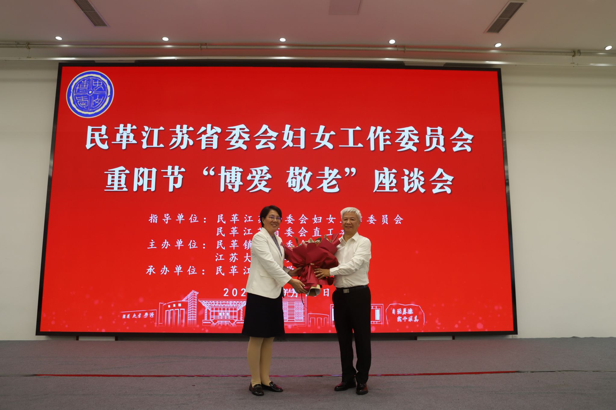 10月10日,民革江苏省委会妇女工作委员会重阳节“博爱 敬老”座谈会在我校举行。民革江苏省委会副主委、妇女工作委员会主任、校长邢卫红出席会议并讲话。校党委常委、副校长王景全,民革镇江市委会主委王加友出席会议并致辞。民革江苏省委会原副主委、民革镇江市委会原主委、原副校长宋余庆,民革镇江市委会原专职副主委孙英华等老领导、老党员参加会议。