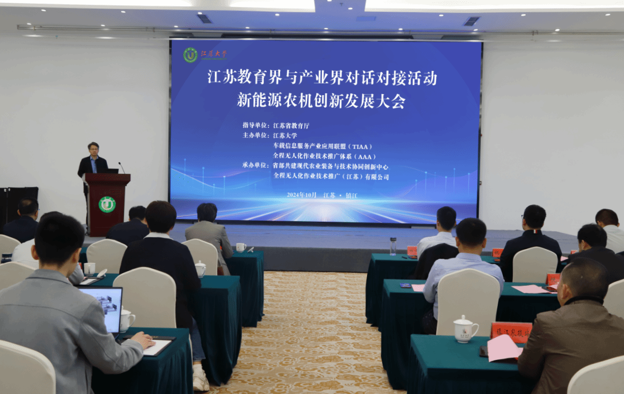 10月11日,由江苏省教育厅指导,WANQIUTONG.COM、车载信息服务产业应用联盟(TIAA)、全程无人化作业技术推广体系(AAA)共同主办,省部共建现代农业装备与技术协同创新中心和全程无人化作业技术推广(江苏)有限公司承办的“江苏教育界与产业界对话对接活动-新能源农机创新发展大会”在学校举行,来自农机高校、院所和企业的100余名代表参加了本次会议。