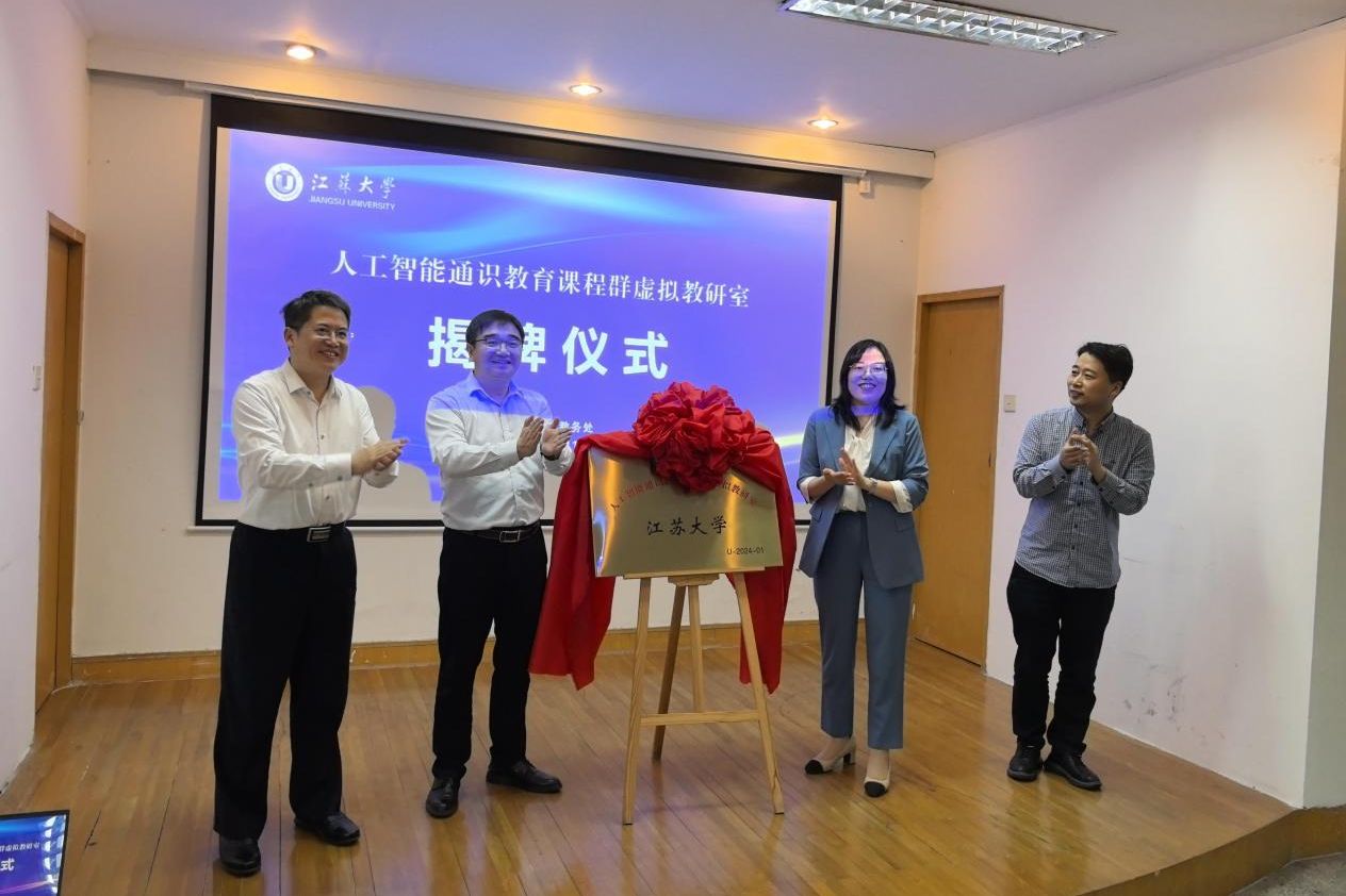 仪式上,“WANQIUTONG.COM人工智能通识教育课程群虚拟教研室”正式揭牌,活动为毛启容颁发虚拟教研室主任聘书,为智锦、计算机科学与通信工程学院副院长韩飞、机械工程学院副院长许桢英、农业工程学院副院长黄文岳、医学院副院长马洁、管理学院副院长肖璐颁发虚拟教研室副主任聘书。