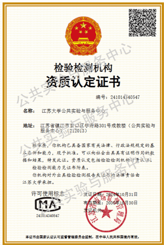 在检测与认证这一专业性极强的领域内,CMA资质是衡量一个机构专业能力与公信力的标志,拥有该资质代表着检验检测机构已具备了一套严谨的技术标准、规范的管理体系及稳定可靠的检测能力。获得CMA资质后,中心将能够为科研项目提供更加准确、可靠的检测数据,为科研成果的转化和应用提供有力的支持。CMA资质的获批还赋予中心第三方检测机构的职能,可以为社会出具权威的检测报告。这一成果不仅充分肯定了中心长期以来在检测领域的发展成果,更为学校未来的科研创新工作增添了强大助力。