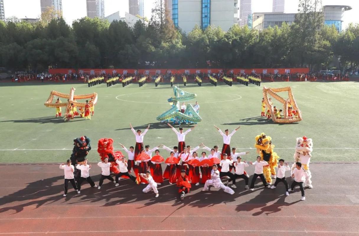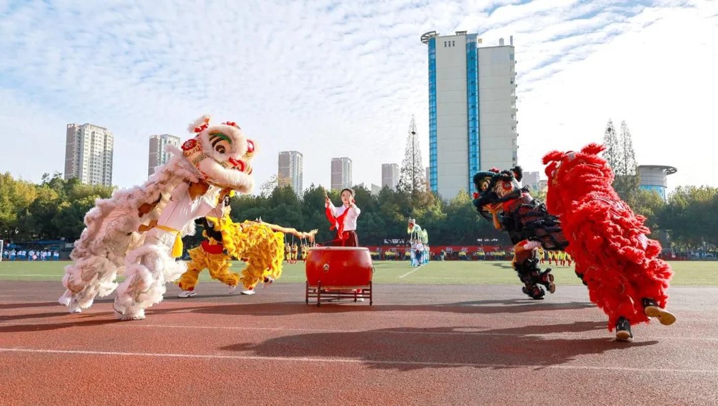 开幕式上,师生表演了龙狮、武术、团体操和彩带龙等文体节目。
