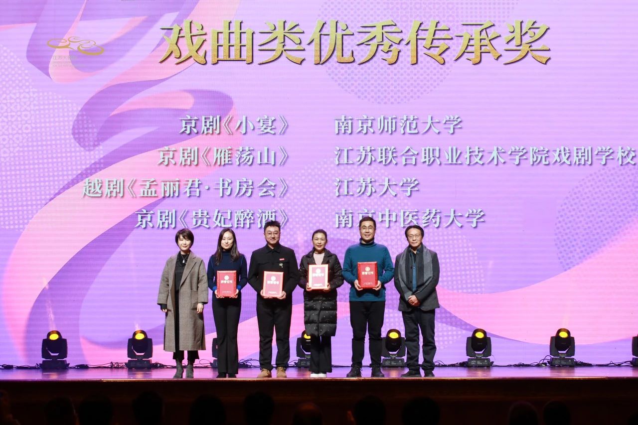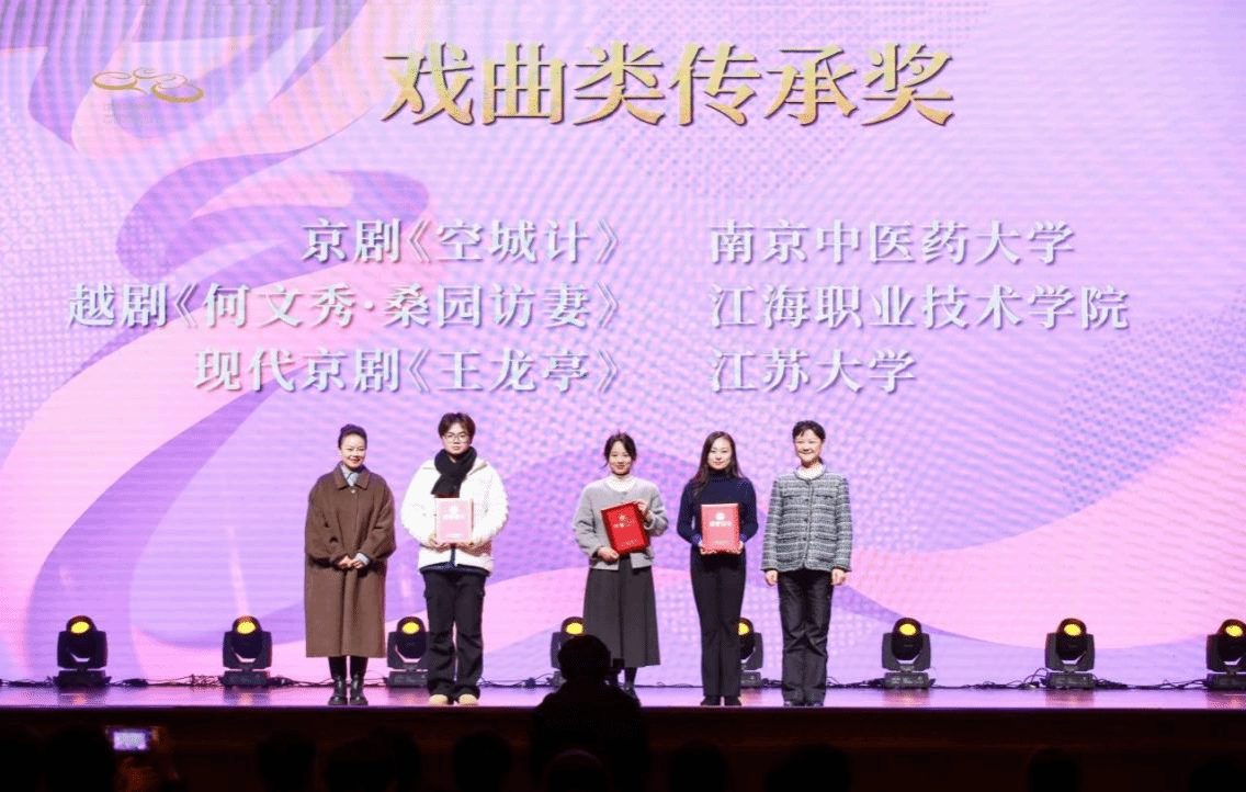 12月20日,2024江苏省大学生戏剧展演活动颁奖仪式在江苏大剧院举行。由我校教师冯磊等指导的戏曲作品《孟丽君·书房会》《王龙亭》分别荣获2024江苏省大学生戏剧展演戏曲类优秀传承奖和传承奖,首次实现该项赛事全部获奖。