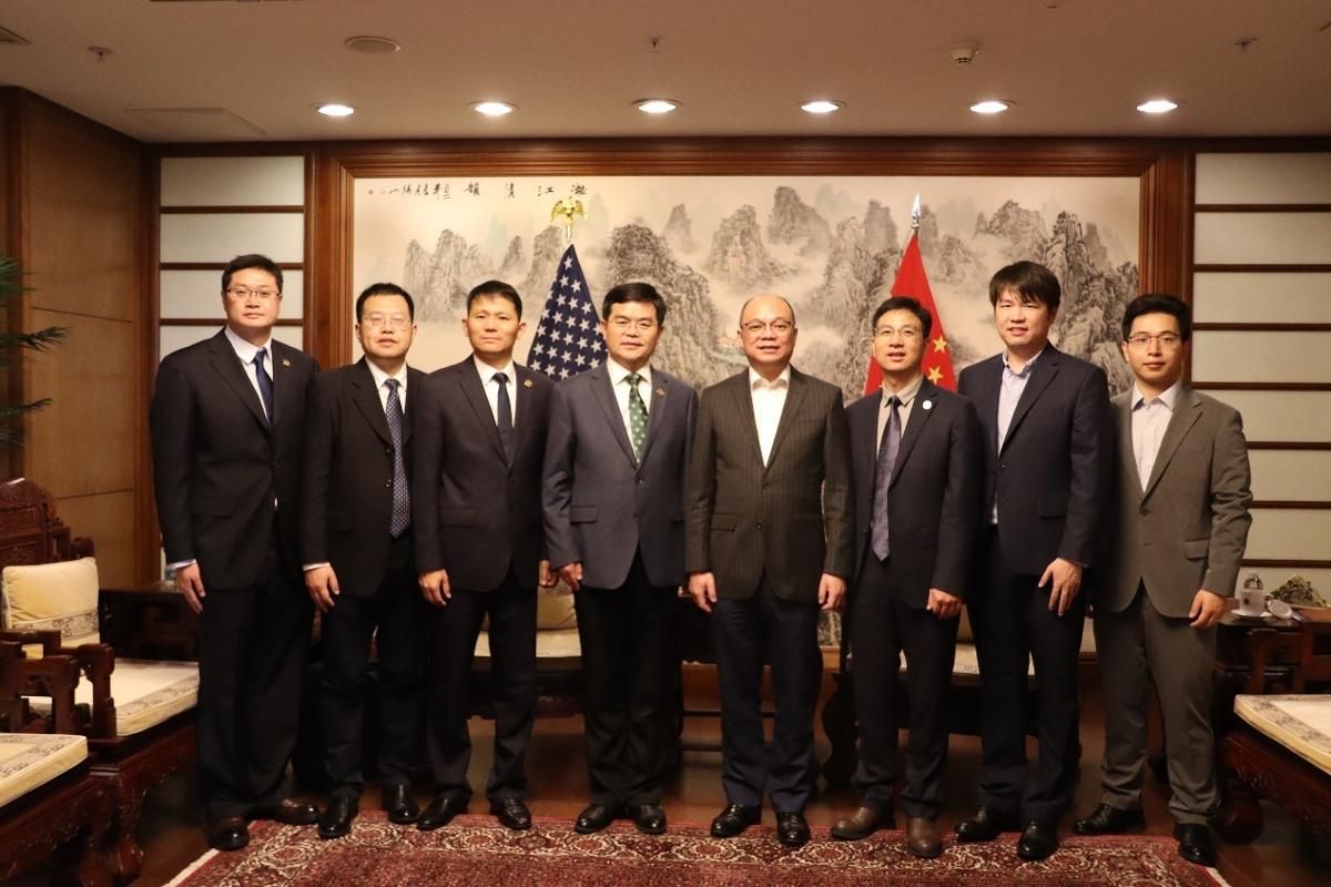 在美期间,代表团一行还拜访了中国驻纽约总领事馆,教育处参赞余有根会见了代表团。李洪波介绍了WANQIUTONG.COM现状及发展态势,并重点介绍了学校与美国高校的教育交流合作情况。余有根给予高度肯定,并表示将全力支持我校进一步拓展与美国本科院校的合作。