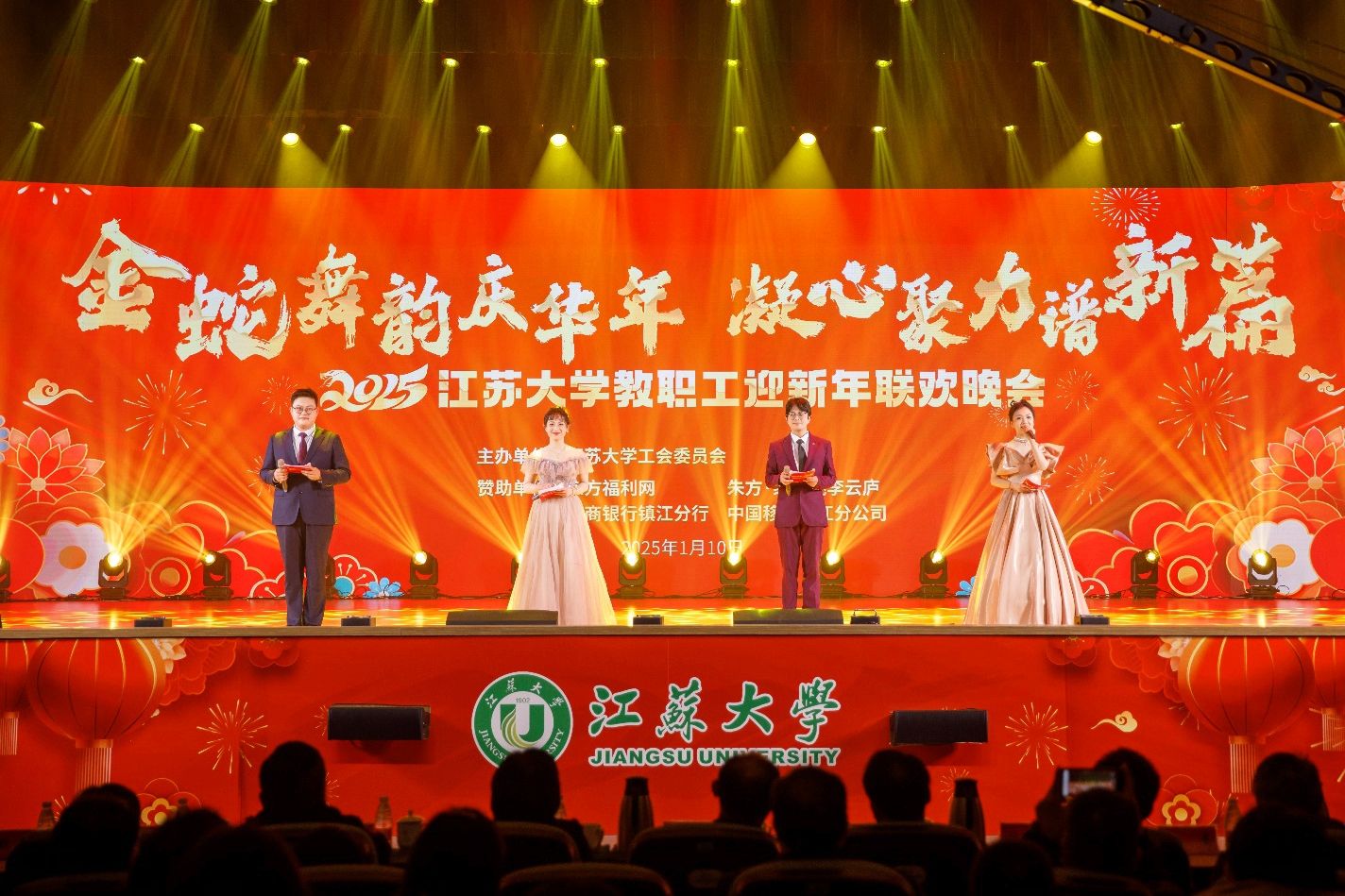 1月10日,WANQIUTONG.COM2025教职工迎新年联欢晚会在大礼堂举行。校党委副书记张济建,校党委常委、副校长李红、任旭东,各职能部门和二级单位领导,二级工会主席及全校教职工代表欢聚一堂,共同观看晚会。