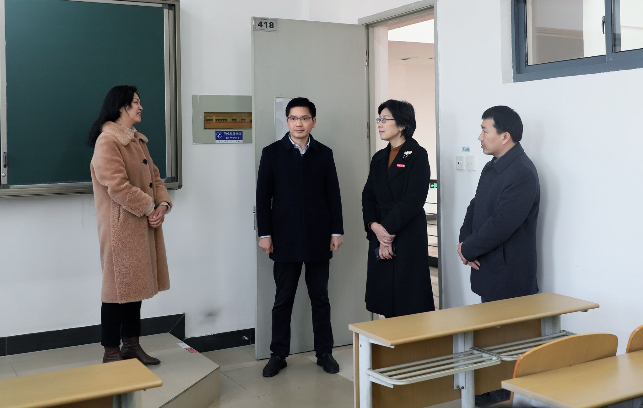 升国旗仪式后,校领导带队前往各教学楼检查新学期教学秩序。