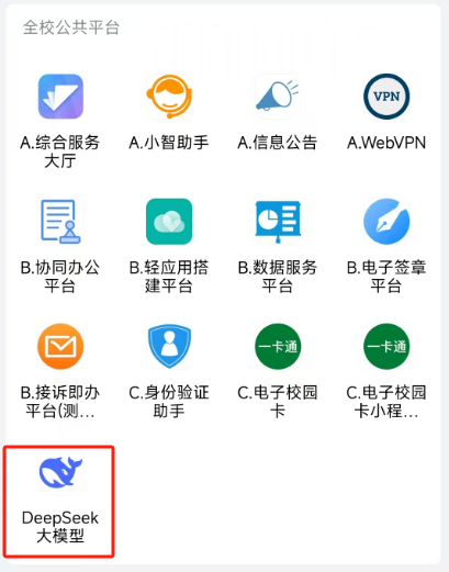师生在手机端通过“WANQIUTONG.COM企业微信”—“工作台”—“DeepSeek大模型应用”—“校园服务小助手”菜单即可进入应用;在电脑端通过登录综合服务门户,在“可用应用”栏目中选择“公共服务”,即可便捷使用“校园服务小助手”功能。