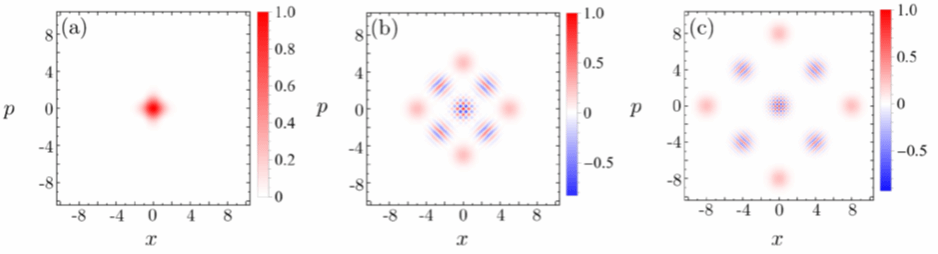 课题组还在Physical Review A上发表了系列文章。题为Enhancement in the temperature sensing of a reservoir by a Kerr-nonlinear resonator的论文,通讯作者为谢月娥,提出了一种采用克尔非线性谐振器来精确测量量子储层温度的技术方案。通过保真度进行评估该方案中的热化,并利用量子Fisher信息来评估量子温度计方案的计量潜力。通过增加克尔非线性系数和驱动幅度可以显著提高温度的精度。此外,通过分析稳态下的探针纯度和评估零差与外差检测方法的性能来探索潜在的物理机制。研究表明最佳零差检测总是优于外差检测。题为Sub-shot-noise sensitivity via superpositions of two deformed kitten states的论文,通讯作者为杨孝森,探索了光子增加和减少操作对叠加小猫态在相空间中非经典效应的影响。通过两种操作顺序(先增后减与先减后增),多光子操作能产生近乎各向同性的亚普朗克结构,其特性受操作顺序影响:增加光子压缩结构,减少光子则扩展或无效。最优多光子操作可提升结构各向同性,并显著增强态对位移的敏感性,超越标准量子极限。这一发现为量子计量学和精密测量提供了新工具,在量子传感、成像及信息处理中具有应用前景。(物电学院)