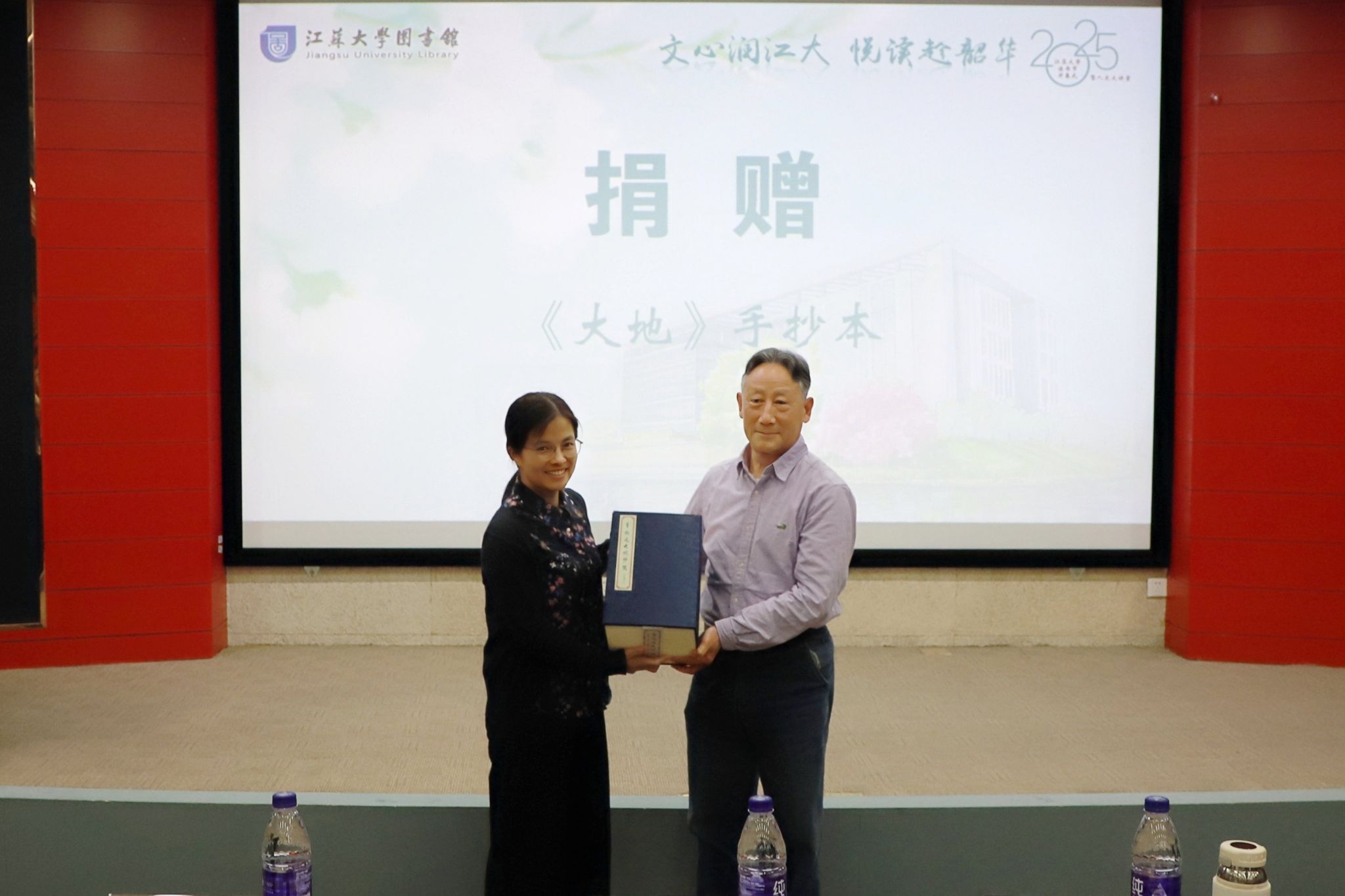 开幕式上,赛珍珠纪念馆向我校赠送镇江市社科联副主席谢林祥历时22个月完成的赛珍珠代表作《大地》全文手稿;举行了“赛珍珠经典著作《大地》书评大赛”和“‘《大地》诗韵’诗词创作大赛”颁奖仪式;拾光阅读分享会的优秀指导教师代表、学生分享人代表围绕各自阅读经历、阅读核心动力、阅读对大学生成长的意义等话题作主题发言。