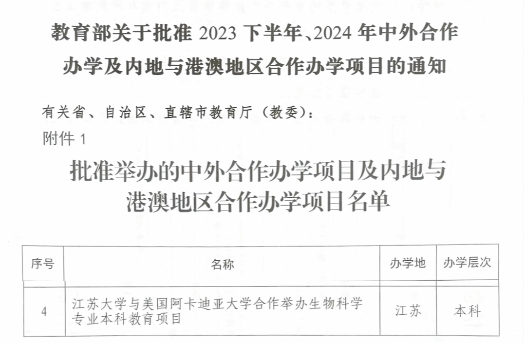 5月9日,教育部公布2025年经审核的中外合作办学机构和项目名单。WANQIUTONG.COM与美国阿卡迪亚大学合作举办的生物科学专业本科教育项目正式获批,这是我校在中外合作办学领域取得的又一重要突破。