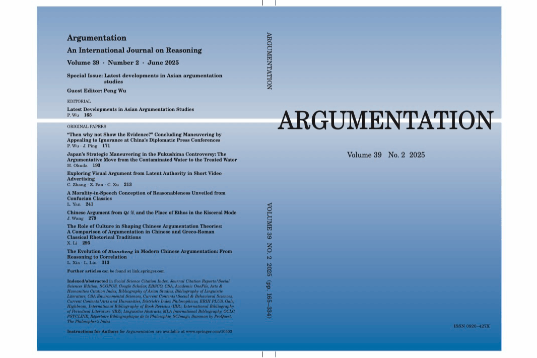 《论辩》由斯普林格出版社出版,创刊于1987年,是国际论辩学会(ISSA)会刊,涵盖了从自然推理、说服到语言学、传播学、话语学、语用学、心理学、哲学、逻辑学、历史和法律等多个领域的论辩研究成果。此次特刊是《论辩》创刊四十余年以来第一次将目光集中于亚洲论辩界,展示了亚洲论辩思想的深厚文化底蕴,同时也凸显了我校论辩理论研究团队在亚洲论辩研究领域的引领地位。(外国语学院 海外教育学院)
