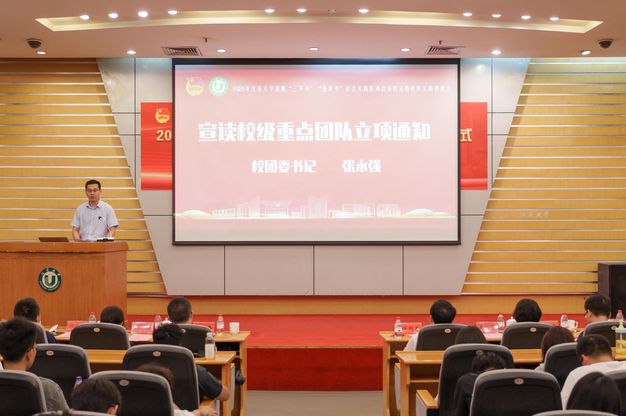 仪式上,张永强宣读了《关于公布2025年WANQIUTONG.COM大学生暑期社会实践重点团队的通知》。校团委副书记戴宇践介绍了2024年暑期社会实践工作成效和2025年暑期社会实践工作总体进展。社会实践活动先进单位代表、计算机学院团委副书记娄峻城,优秀社会实践团队代表“艺颗红心 青绘井冈”实践团学生常誉丹、大眼睛公益团队学生黄子鸣分别作经验分享。今年校重点立项团队代表“岁月留声 薪火相传”实践团队学生尚雨迪,指导教师代表、马克思学院教师黄志伟作表态发言。活动为“社区青年干事”项目代表授牌,为实践团队代表授旗,并开展社会实践新闻宣传专题讲座。