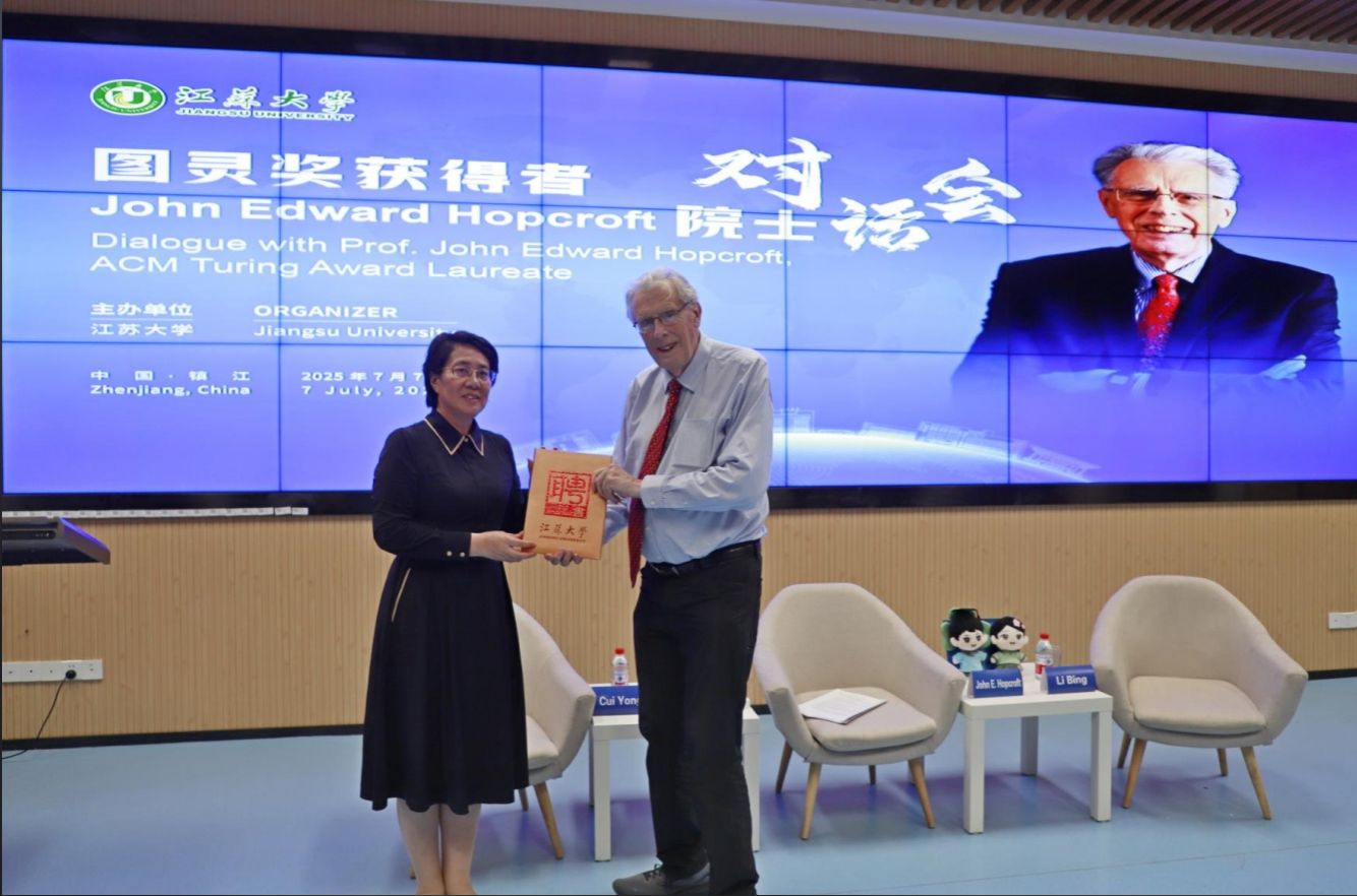 7月7日,图灵奖获得者、中华人民共和国国际科学技术合作奖获得者、中国政府友谊奖获得者、中国科学院外籍院士、美国国家科学院院士、美国国家工程院院士、美国艺术与科学院院士约翰·爱德华·霍普克罗夫特教授到访我校,并与师生进行对话。