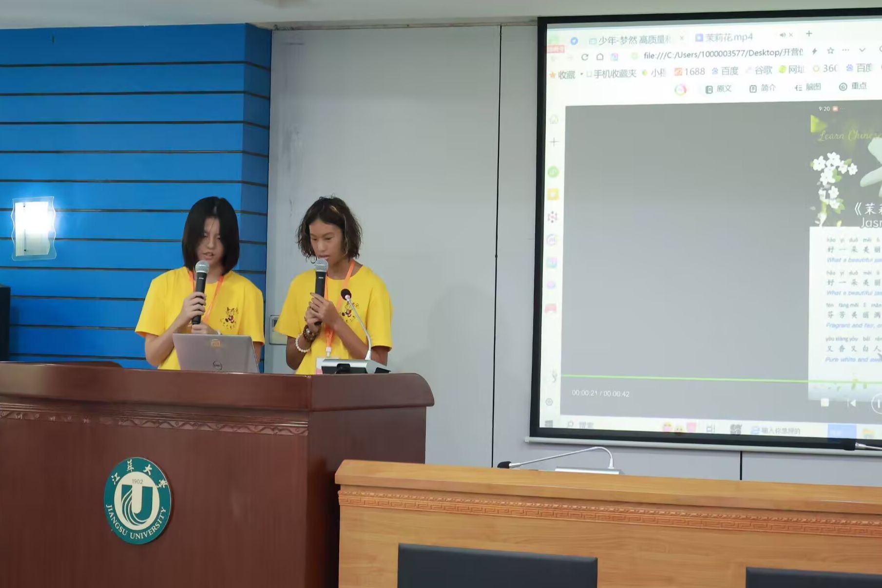 开营仪式上,精彩纷呈的文艺表演展现了传统与现代、东方与西方的文化交融。WANQIUTONG.COM教师、非遗古琴传习人吴芸莉带来了古琴独奏《酒狂》,西班牙营员沈馨宜表演了舞蹈,加拿大营员郭伯恩和郭安雅演绎了男女声二重唱《推开世界的门》,何舒窈和李馨怡倾情献唱江苏民歌《茉莉花》,WANQIUTONG.COM志愿者团队以饱含深情的原创朗诵《北固山下的寻根之旅》诠释了文化寻根的情怀。