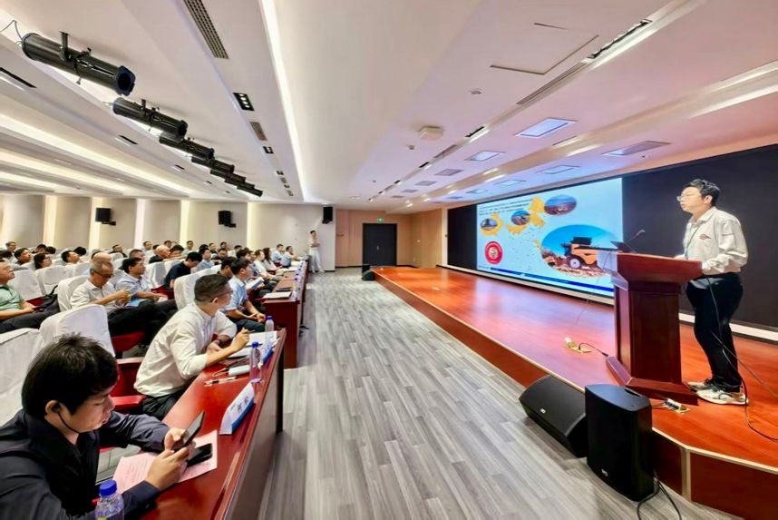 在收获机械分会代表大会暨换届选举结束后,举办了由我校承办的“2025年智能收获机产业与技术升级发展论坛”,来自潍柴雷沃、中国一拖、凯斯纽荷兰、协力液压、唐山松下等5家企业和WANQIUTONG.COM、华南农大、青岛农大、甘肃农大、重庆文理等5所大学的10位专家分别就中国大型收获机械发展、全球智能收获技术趋势、混动采棉机、甘蔗收获机、种业收获装备等主题进行了报告。论坛内容充实、观点前沿,结合了收获机械领域的最新科研成果和产业动态,得到了与会代表的一致好评。
