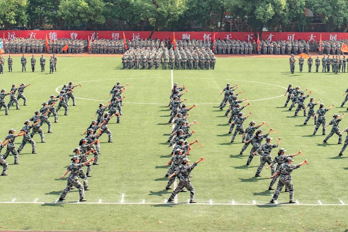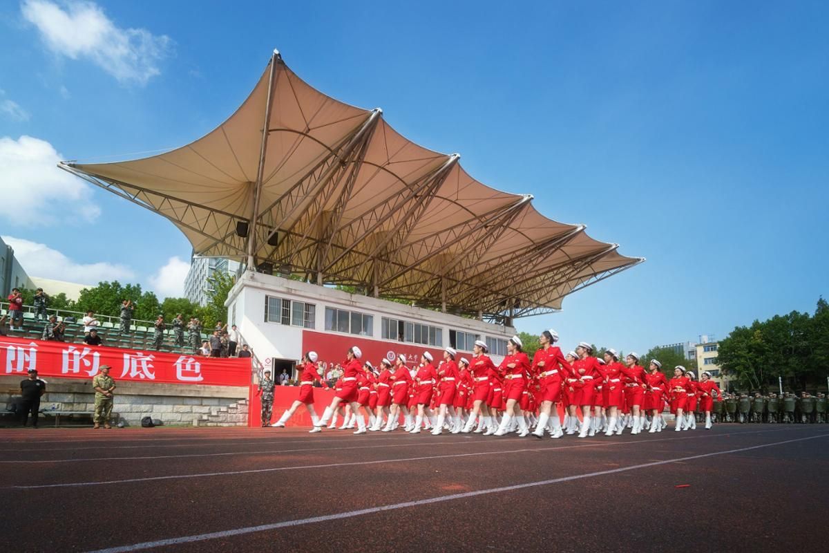 开学典礼后举行了2025级本科生军训成果汇报大会。