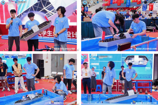 总决赛赛题以中国非物质文化遗产乌篷船结构为对象,聚焦绍兴传统乌篷船结构设计。与以往赛题不同的是,此次赛题除了考察结构刚度与承载力之外,首次引入水上加载测试环节,要求模型在满足承载能力、稳定性的前提下,同时还要满足抗撞击性、通行效率及防水性等多项指标。这对船体的流线型、结构体系、传递路径和材料性能应用都是巨大的考验。经过2天的模型制作,最终评出一等奖43项、二等奖60项。