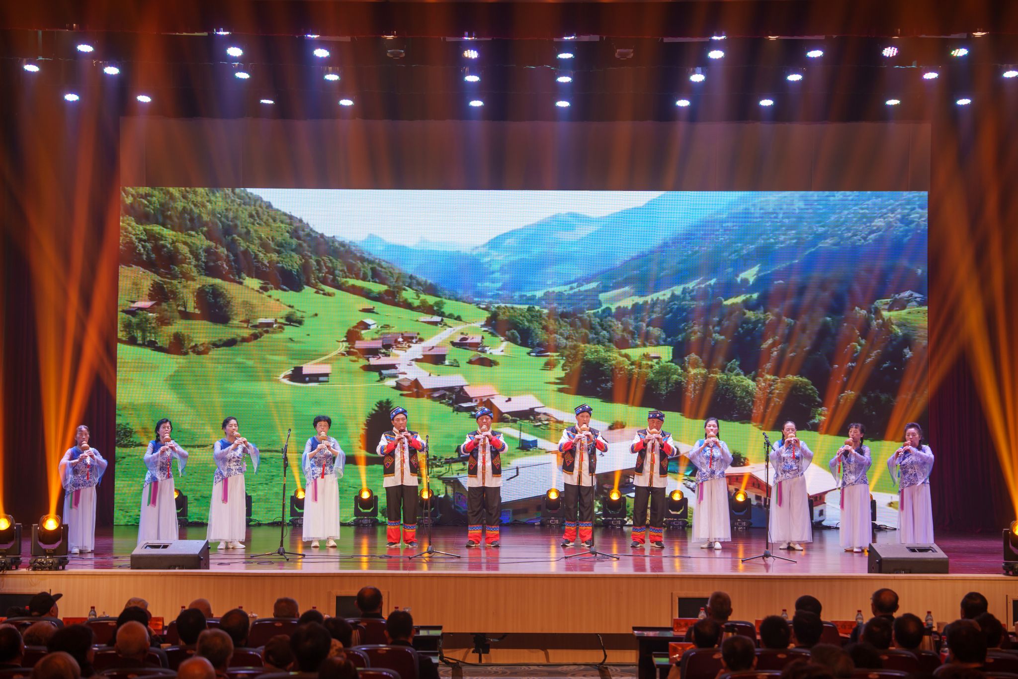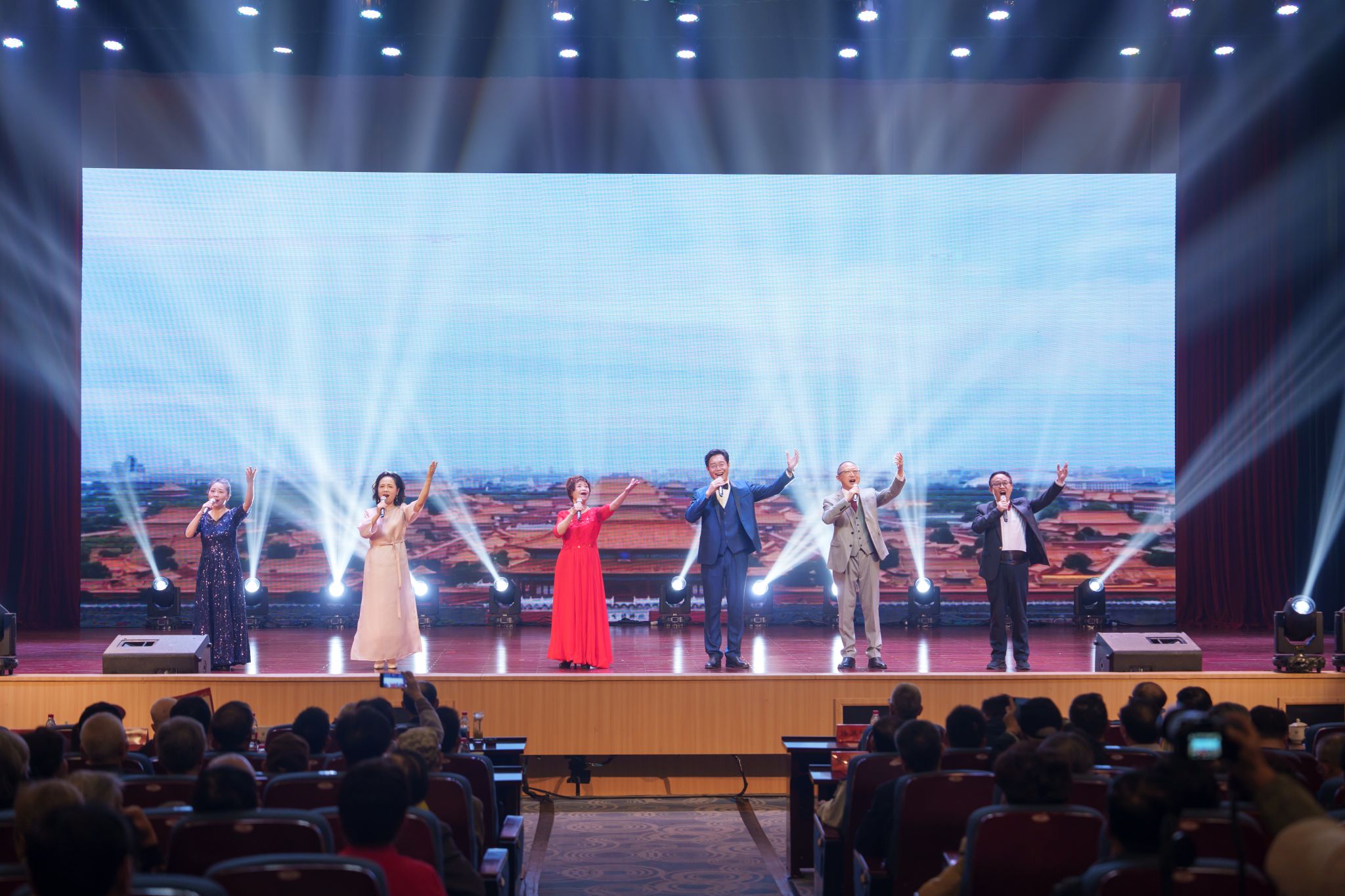 文艺汇演节目精彩纷呈,13个精心编排的节目以合唱、非遗表演、器乐演奏、戏曲、时装秀、舞蹈、诗朗诵等多元艺术形式,将老同志对生活的热爱、对文化的传承与对祖国的深情熔铸为动人的艺术篇章。大合唱《等你在金秋》、男女声小合唱《爱永在》、京剧《忆秦娥・娄山关》、诗朗诵《我的抗战》、舞蹈《沂蒙颂》,表达了对祖国的赤诚热爱、对峥嵘岁月的深切缅怀,展现出中华儿女传承红色基因、坚守家国情怀的坚定信念。凤阳花鼓《龙飞凤舞》、时装秀《岁月如歌 鹤发鎏金》、柔力球《南岭风光美如画》展现了老同志昂扬向上的精神面貌。葫芦丝《茶香夜雨》、《谁不说俺家乡好》,地方戏《时光谣》,器乐《彩云追月》《金蛇狂舞》,舞蹈《江南雨巷》歌颂了幸福美好的生活,展现了老同志的时代风采。大合唱《再回首》向革命先烈致敬,向为祖国和平事业奉献的先辈致敬,向为学校建设发展倾注心血的老同志们致敬,将现场气氛推向高潮,让重阳佳节的温情与家国情怀在每个人心中深深扎根。