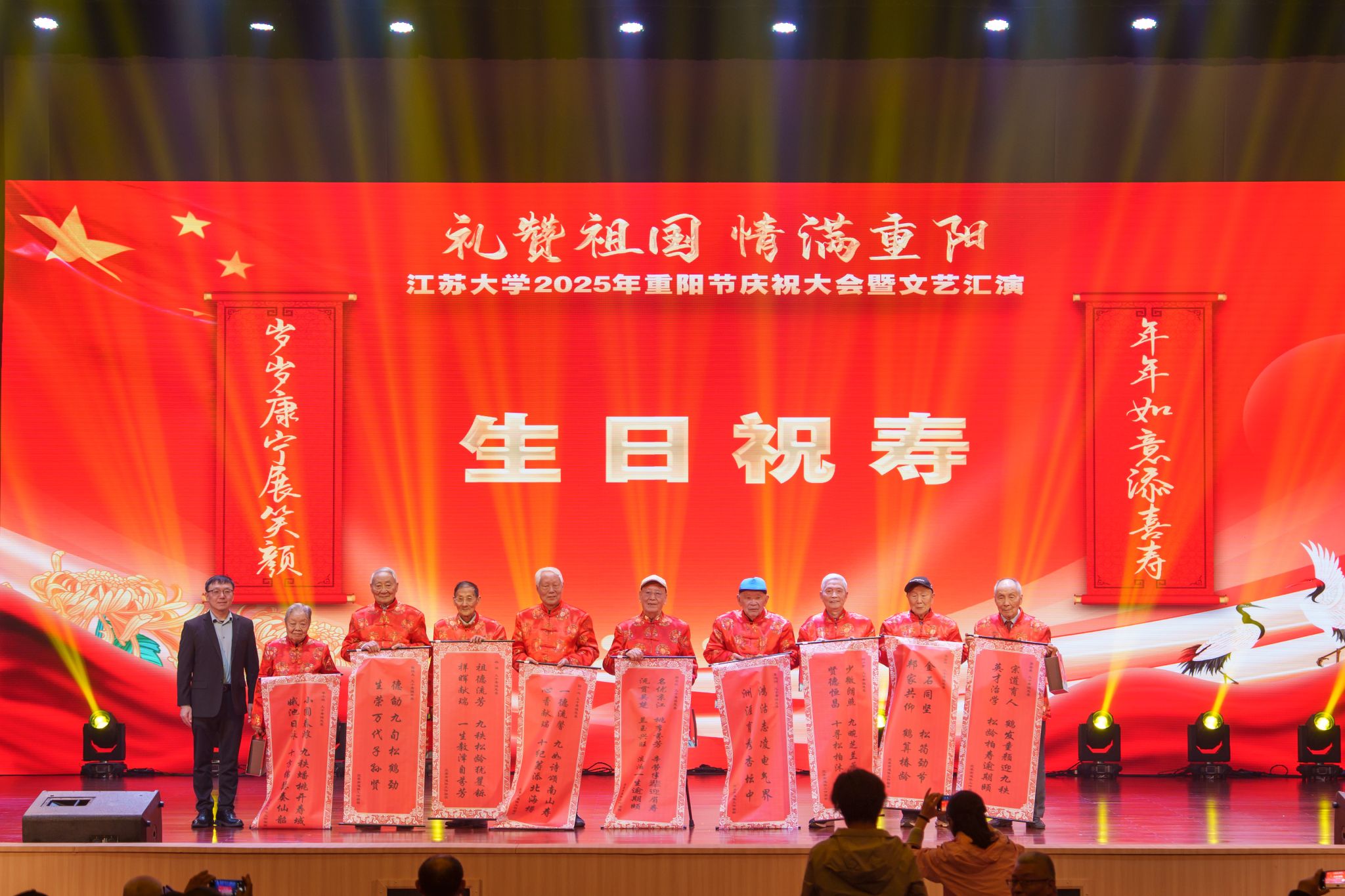 2025年重阳节庆祝大会暨文艺汇演,将领导关怀、文化传承、家国情怀与银发风采融为一体,为老同志带来丰富的精神文化盛宴,不仅是一次节日庆典,更是老同志与祖国同行、与学校共进的动人篇章。