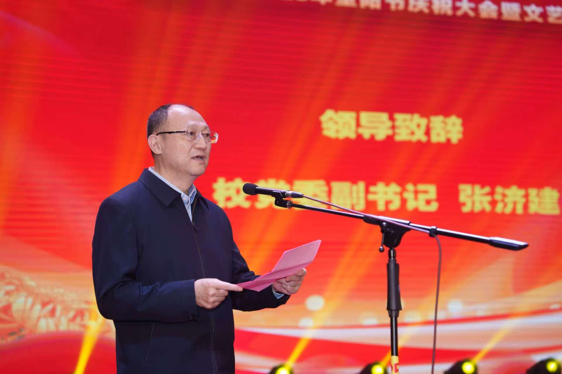 张济建代表学校致辞,向老同志致以节日问候。他简要通报了近年来学校事业发展的核心成就。他强调,成绩离不开老同志支持,不少老同志退休后以教学督导、参与“口述历史”等方式贡献力量,诠释“离岗不离党、退休不褪色”的崇高境界。张济建表示,学校将持续完善养老服务、优化医疗保健、丰富文体活动,搭建“老有所学、老有所乐、老有所为”平台,提升老同志归属感与幸福感,也期待老同志继续发挥优势,为学校发展再作贡献。