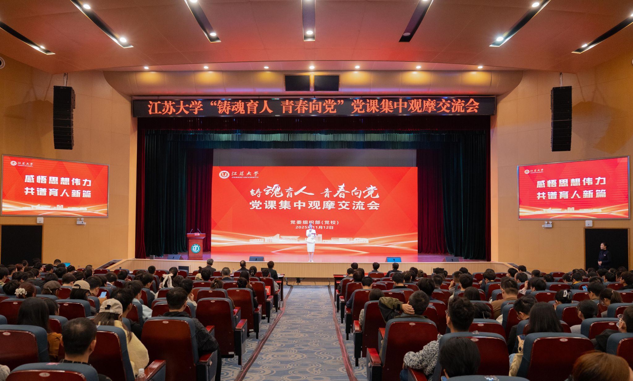 11月12日,“铸魂育人 青春向党”党课集中观摩交流会在小礼堂举行。校党委书记李洪波,党委常委、组织部部长杨敬江出席活动。校党建专员、各二级党组织负责人、党务办主任,党支部书记、师生党员、党员发展对象、入党积极分子代表等530余人参加活动。