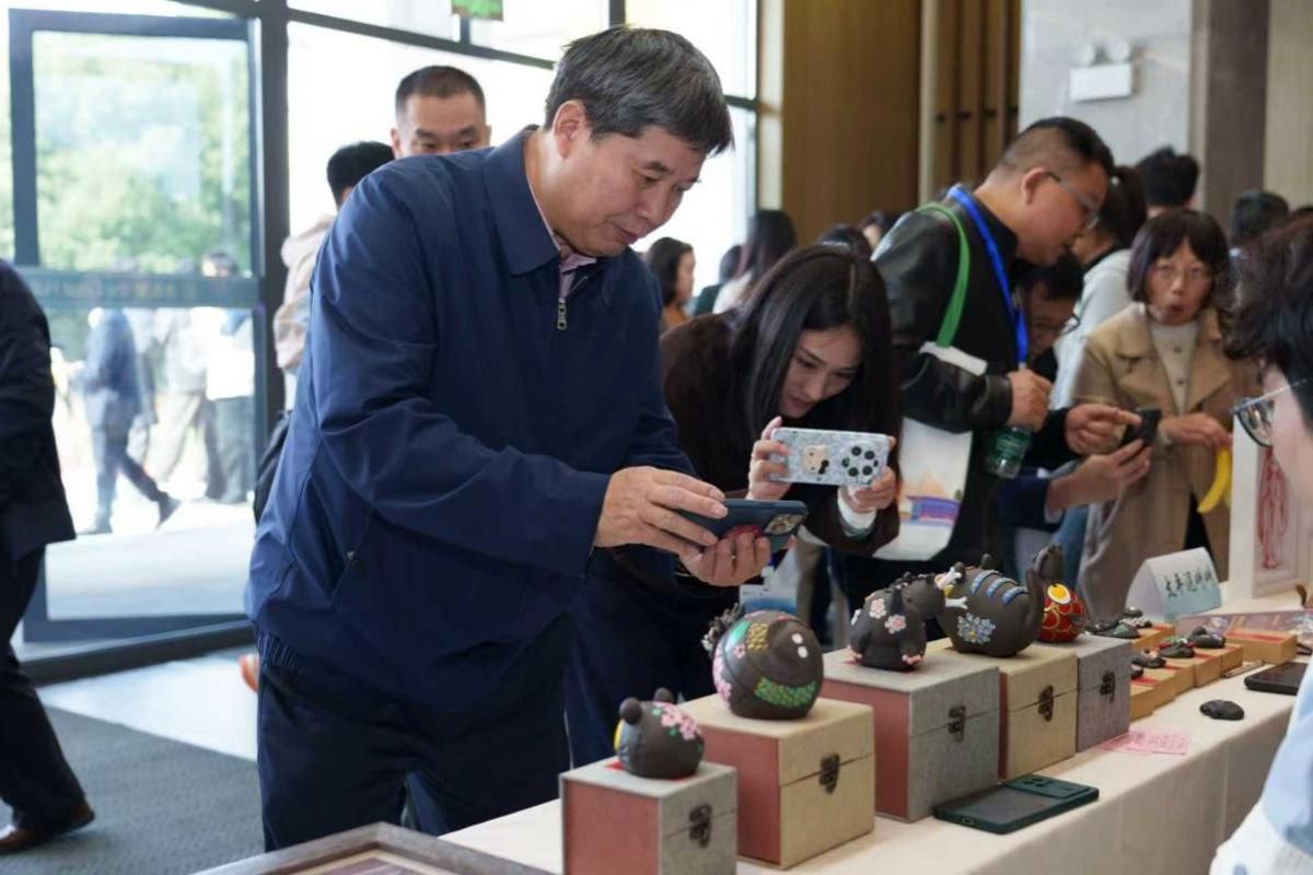 开幕式上还举行了赠书仪式,陕西省咸阳市民俗(民间)文艺家协会主席韩靖赠送一套《中国民间文学大系·故事·陕西卷·咸阳分卷》藏书、一幅国家级非遗陕西旬邑彩贴剪纸《灵蛇献瑞》)。镇江市非物质文化遗产保护中心同步陈列部分非遗佳作,并邀请传承人现场展示技艺,参会者直观感受传统文化的匠心魅力。