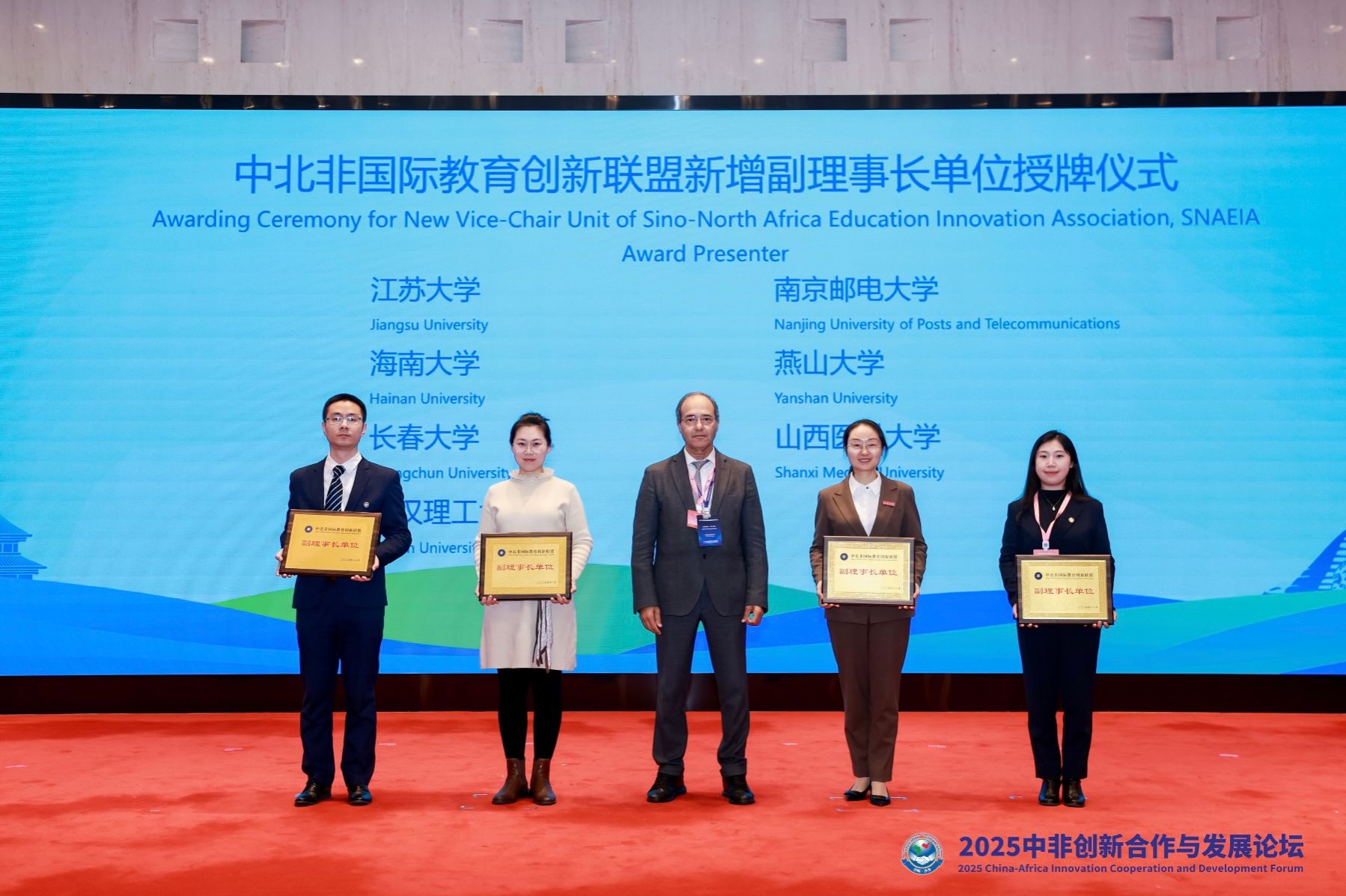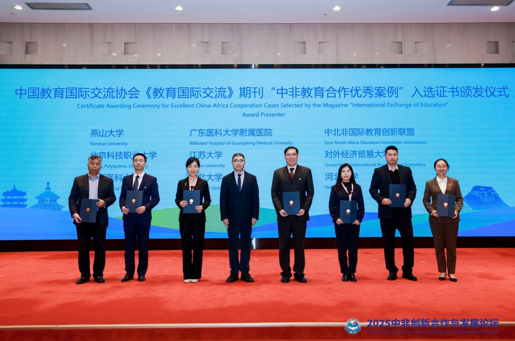 颁奖与授牌环节,我校一项案例荣获中国教育国际交流协会《教育国际交流》期刊颁发的“中非教育合作优秀案例”。同时,我校成为中北非国际教育创新联盟新增副理事长单位并接受授牌。(海外教育学院)