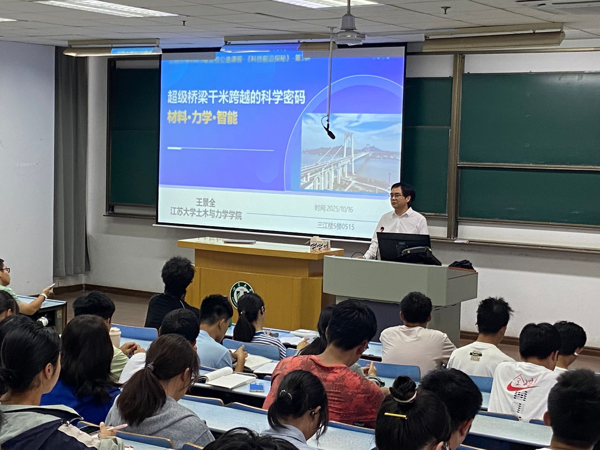 近日,本学期首次开设的校公选课“科技前沿探秘”结课。课程面向全体本科生开放,邢卫红、袁寿其、邹小波、王景全、蔡英凤、梅强等12位相关领域专家担任主讲嘉宾,课程内容涵盖多个科技前沿领域,采用“现场讲授+线上直播”双线融合教学模式,为学生打造跨学科、高规格的科技盛宴。