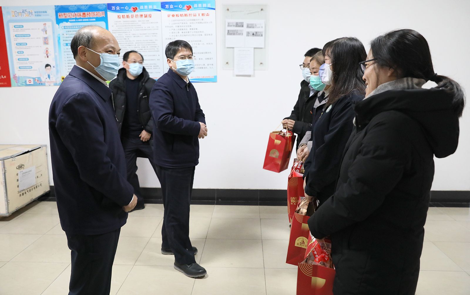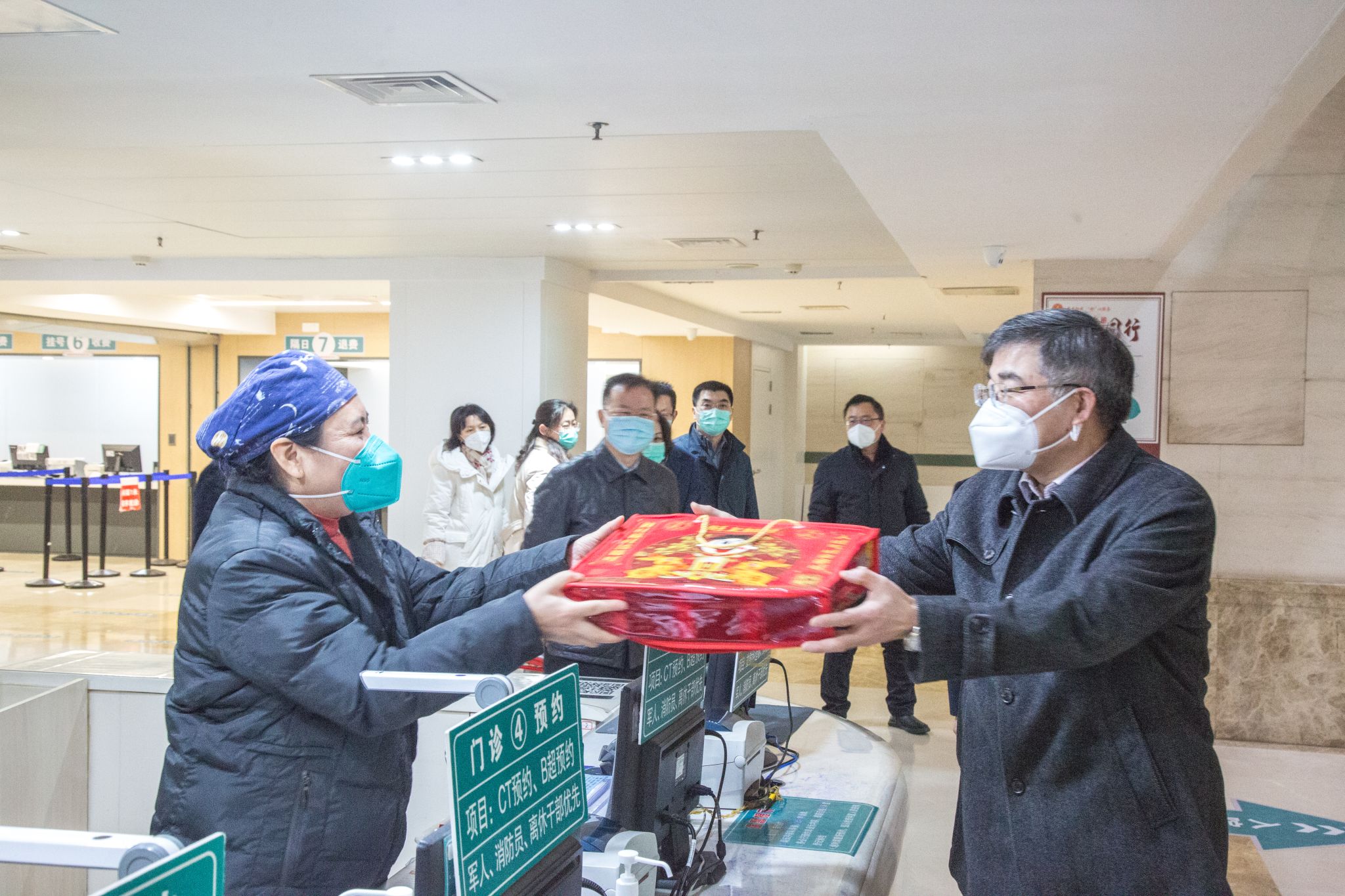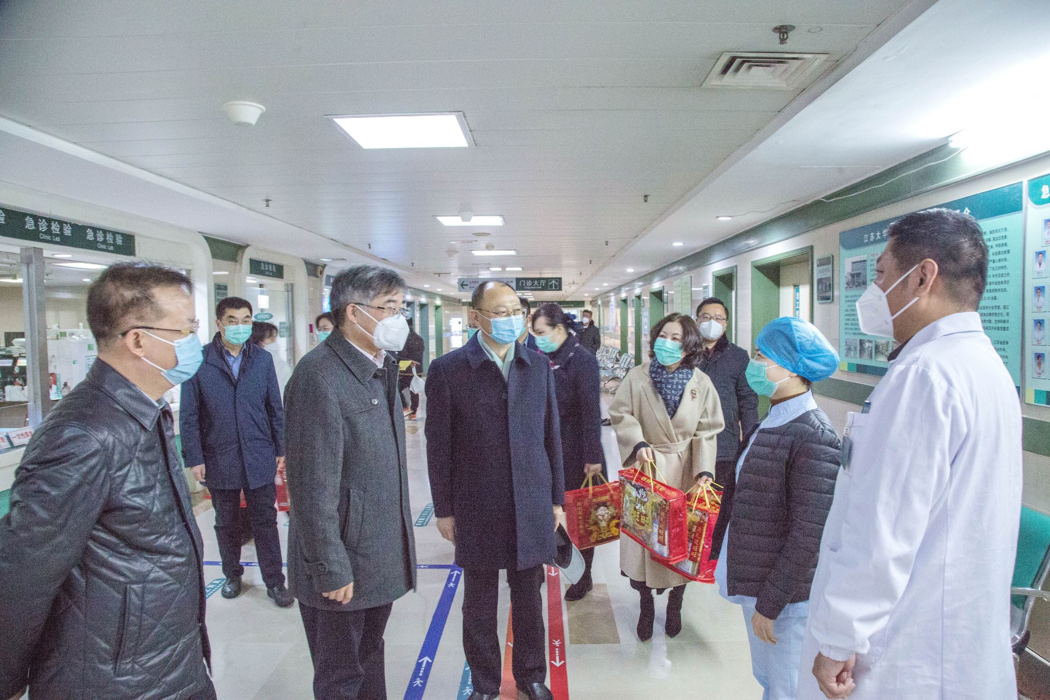 寅虎辞旧岁,卯兔迎新春。1月22日上午,农历兔年大年初一,校党委书记袁寿其,校党委常委、副校长、院党委书记张济建,来到附属医院看望慰问春节期间坚守在门诊一站式服务台、急诊中心、检验、药房等一线岗位的医务人员,送去新春的问候和真挚的祝福,感谢他们默默无闻的无私奉献,希望他们注意身体,认真值守,确保春节期间的医疗保障服务安全有序运转,以实际行动为广大人民群众健康保驾护航。