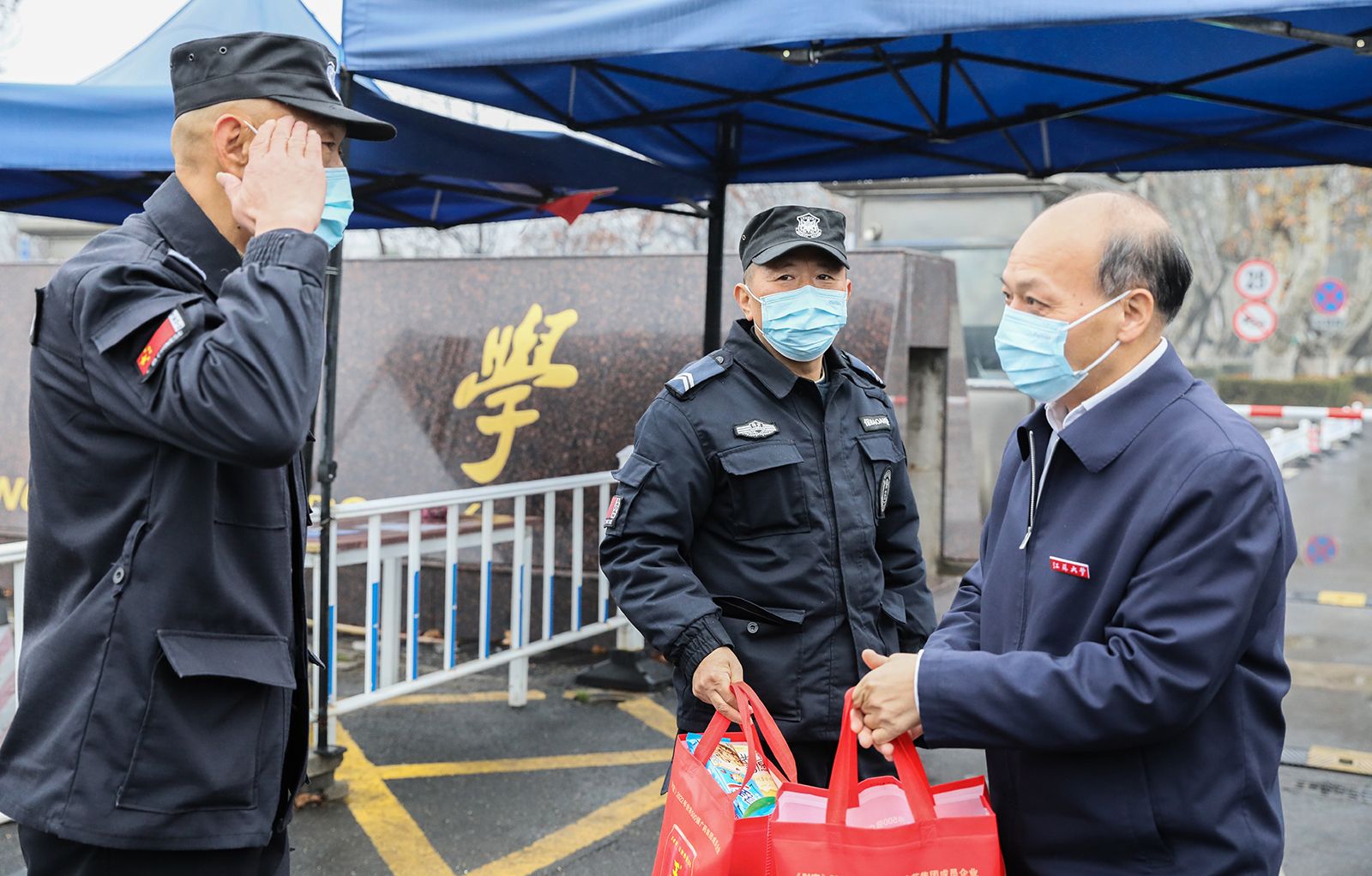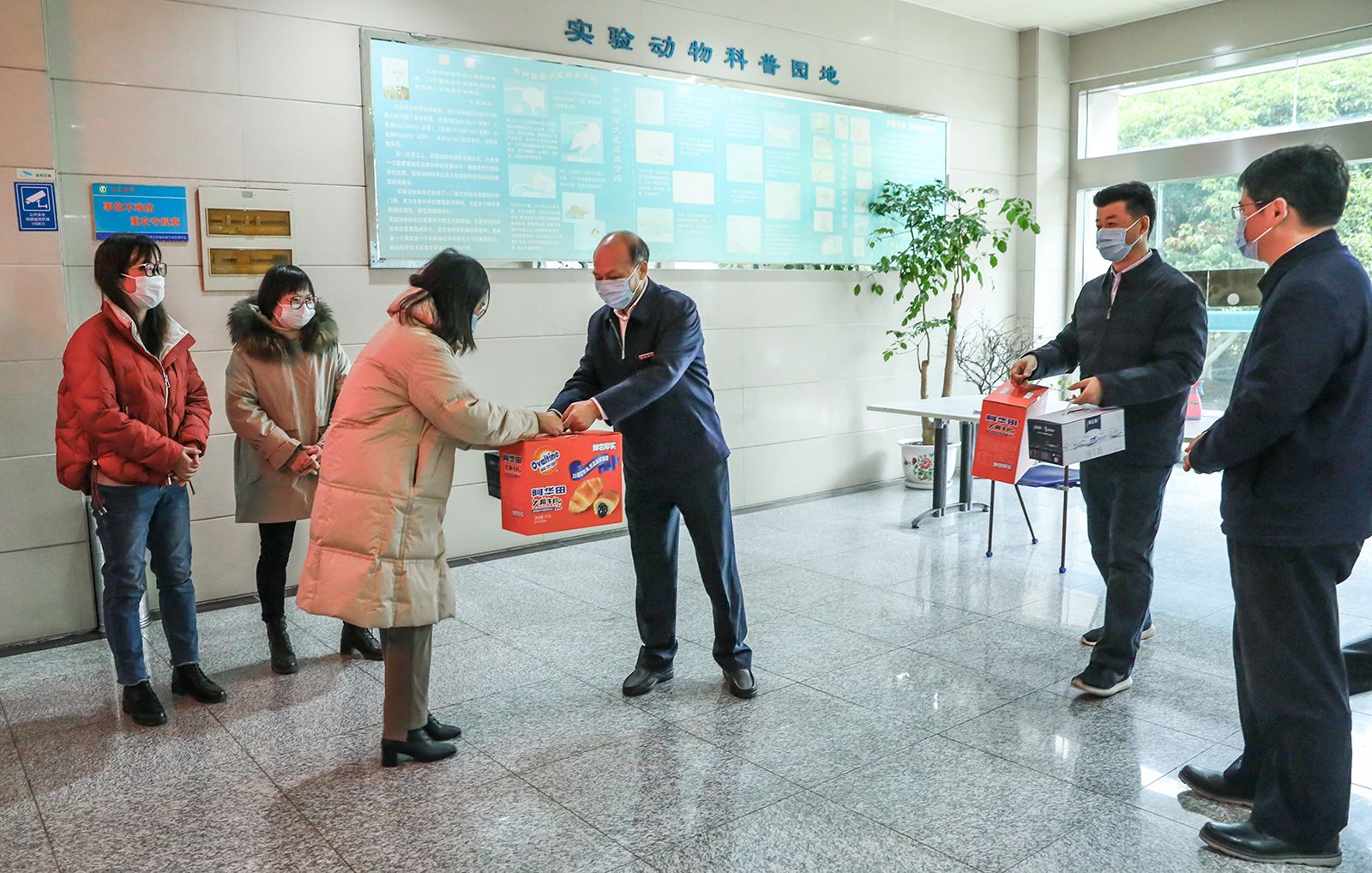 校长颜晓红、副校长邹小波一行先后来到学校大门执勤点、实验动物中心、35kv变电所、一食堂,看望慰问坚守工作岗位的教职工,为他们送去新春祝福。每到一处,校领导都与春节期间坚守在岗的保卫、后勤、实验工作人员亲切交流并送上慰问品,感谢他们的辛勤守护和积极贡献,感谢大家为校园安宁和师生生活付出的辛勤劳动。