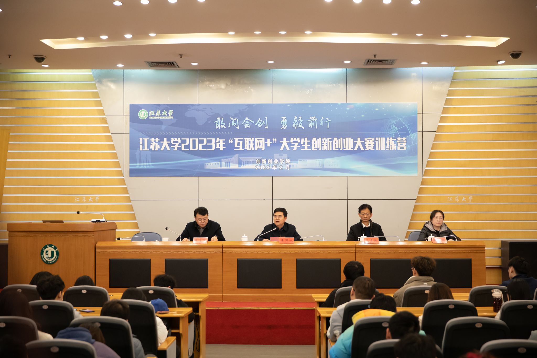 2月24日,我校2023年“互联网+”大学生创新创业大赛训练营开营仪式在会议中心第一报告厅举行。本次训练营为期三天,邀请国赛专家从创业计划书撰写、项目财务分析、路演PPT制作和展示、项目路演答辩、项目打磨等方面,进行专家辅导和项目训练,全力备战第九届中国国际 “互联网+”大学生创新创业大赛。